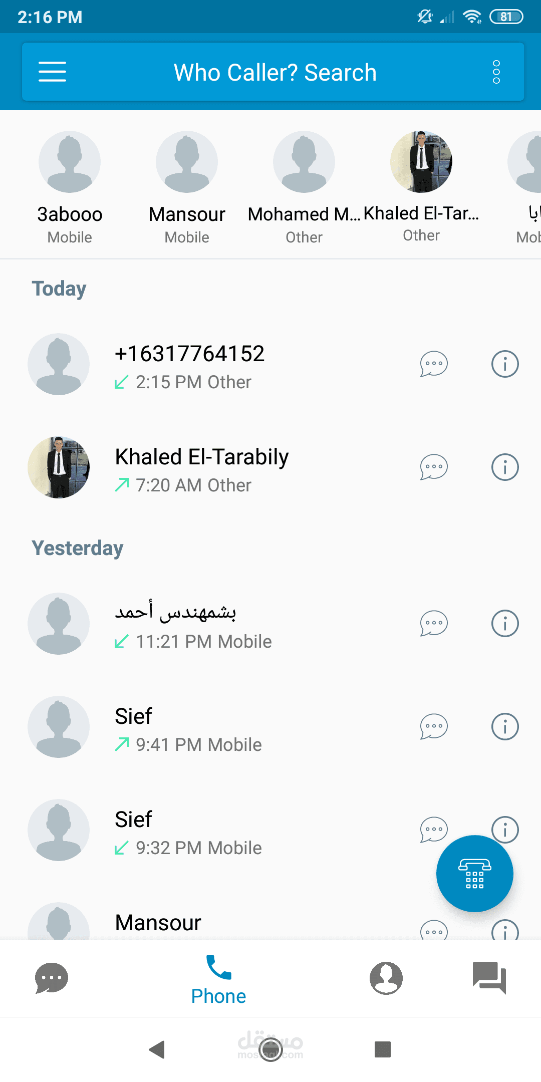 تطبيق أندرويد للبحث عن هوية المتصل.