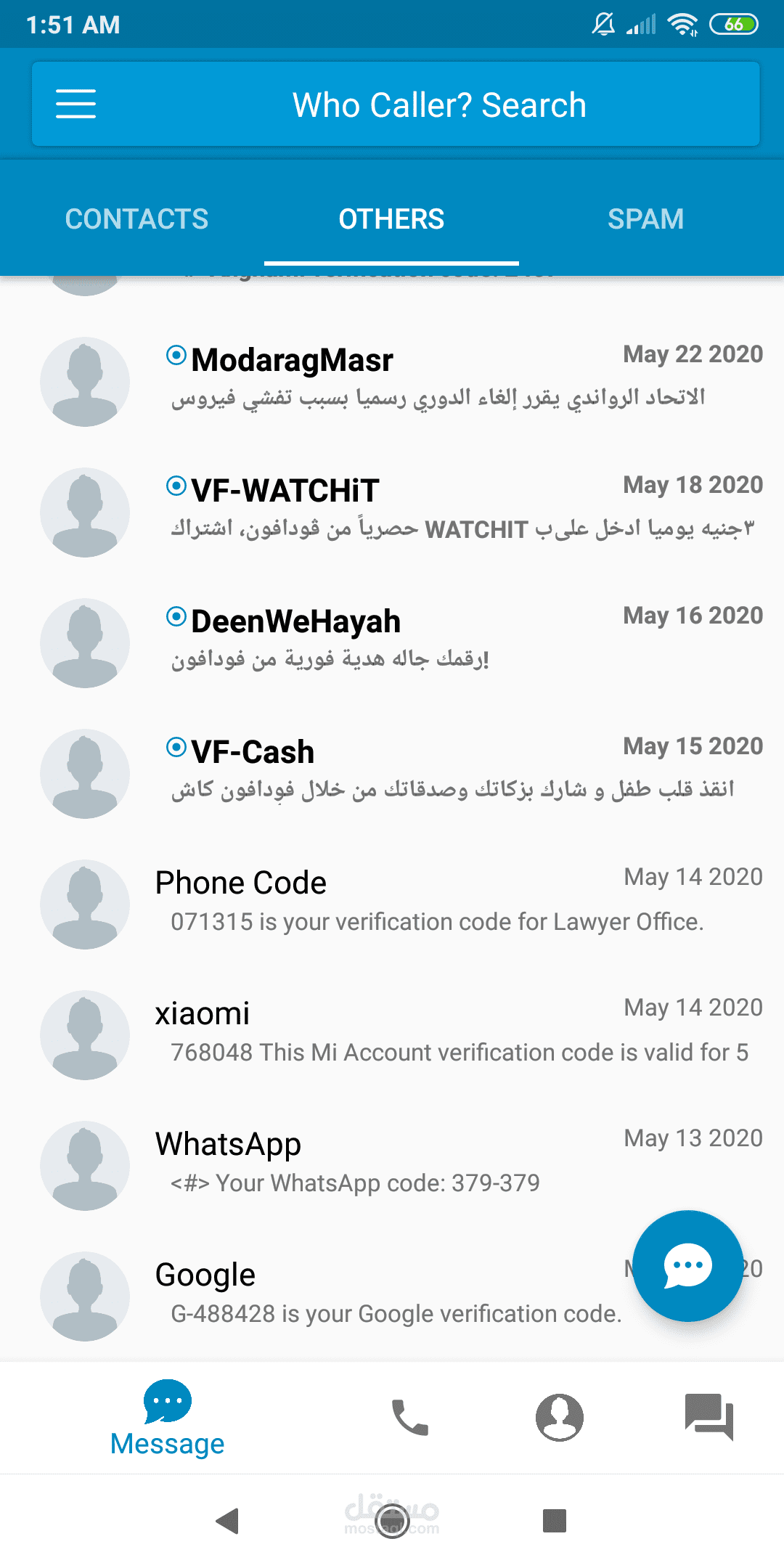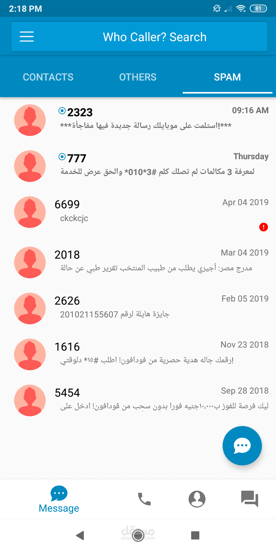2- إرسال رسائل SMS إلى الأرقام الموجودة فالهاتف