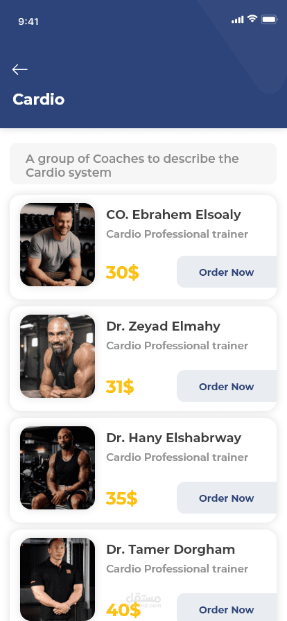 - يمكن للمستخدم متابعة المدربين المؤهلين تأهيلا عاليا للتمارين وخطط القلب.
