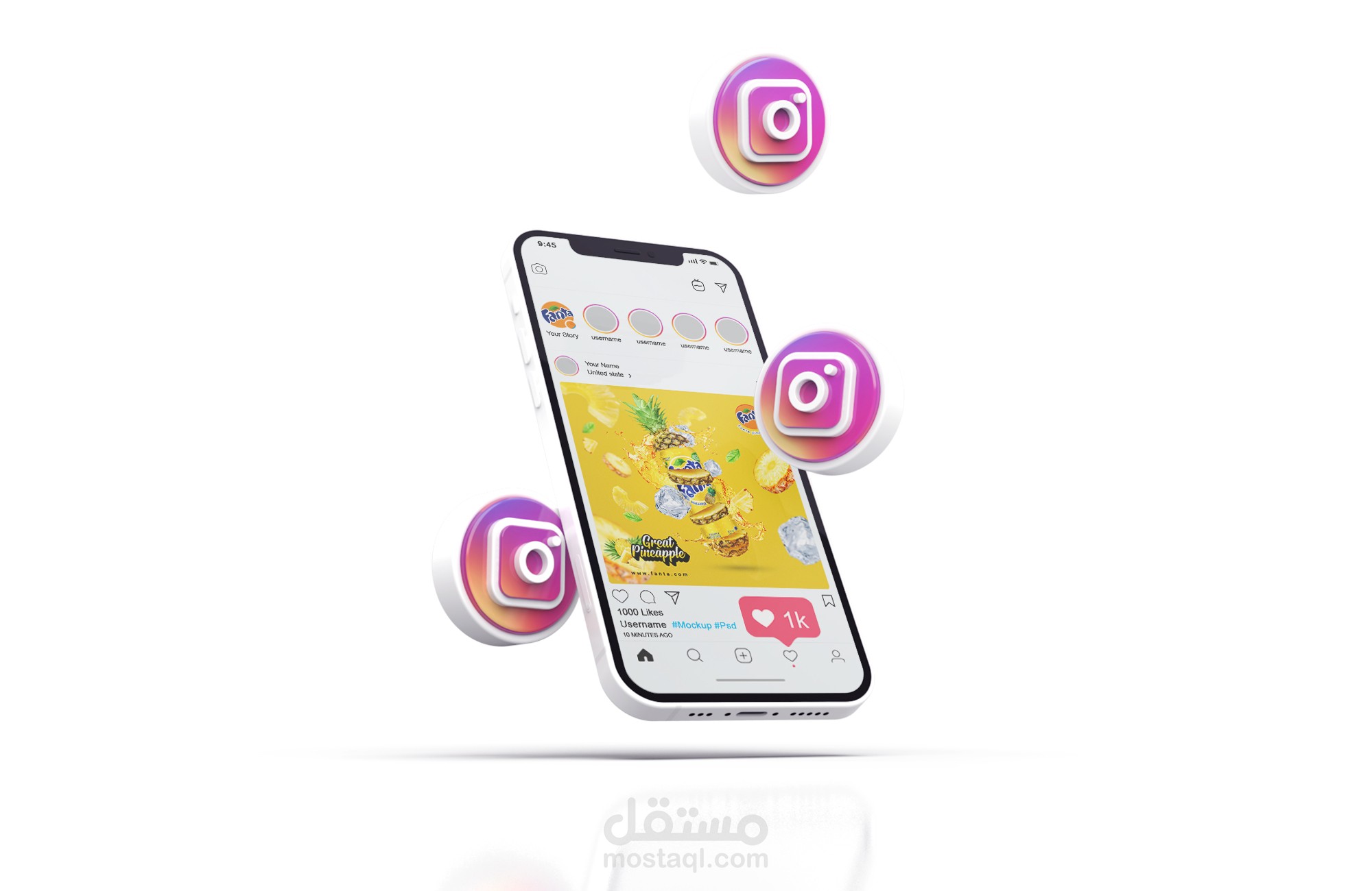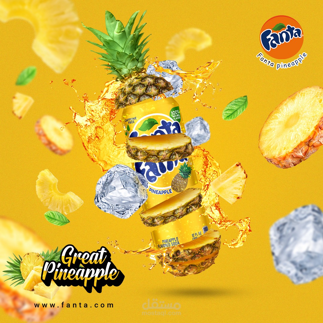 تصميم سوشيال ميديا للترويج عن المشروب الغازي فانتا أناناس