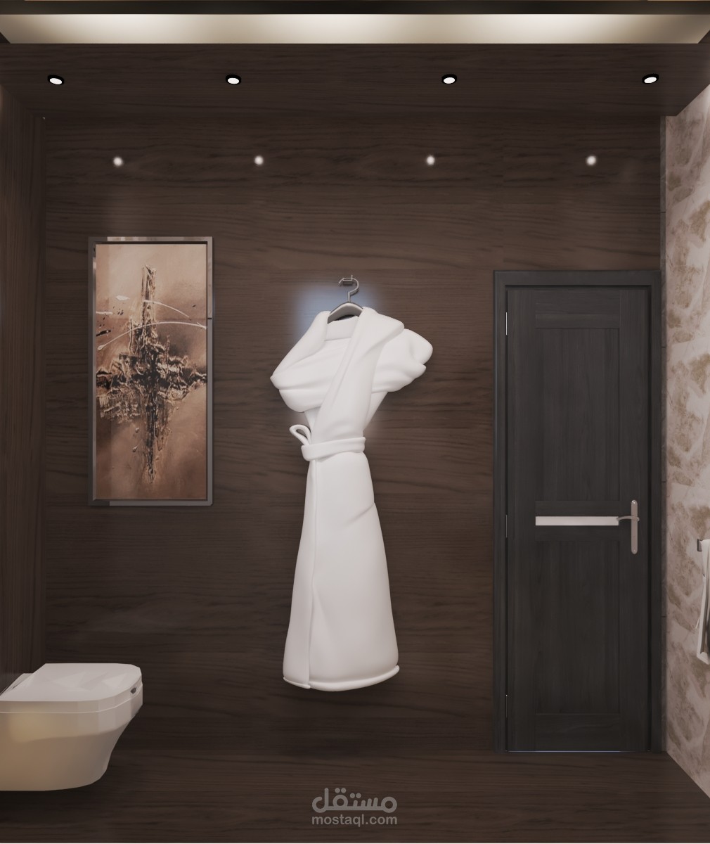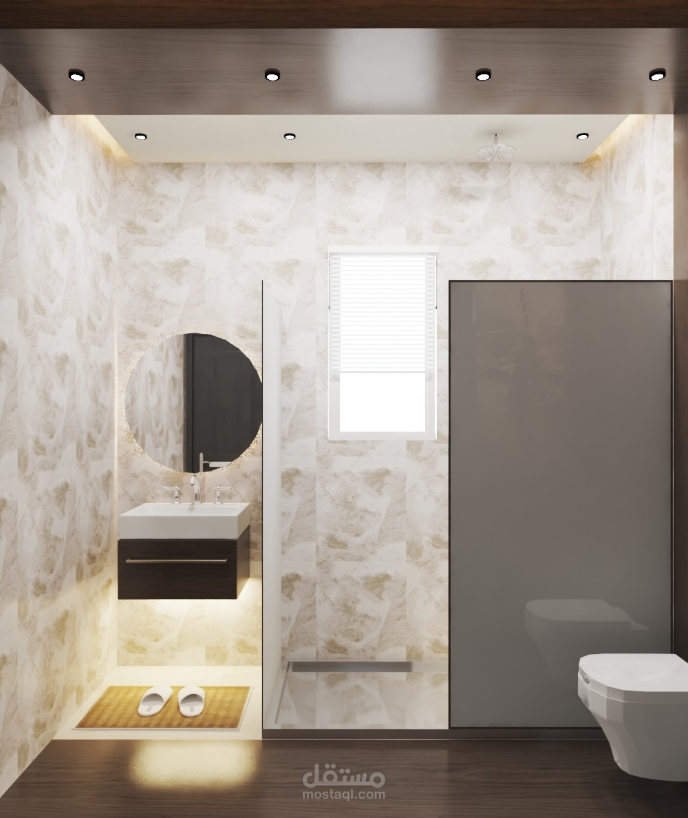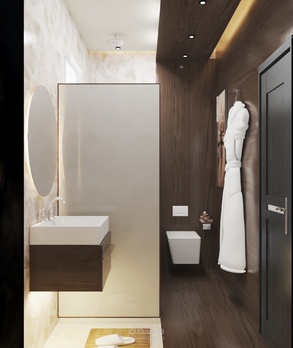 تصميمي لحمام داخلى لغرفة رئيسيه ن ميم يجعل عينيك تتألق نصفه سيراميك على شكل خشب و الاخر الشكل الاعتيادي من اختيارات العميل على ارض الواقع