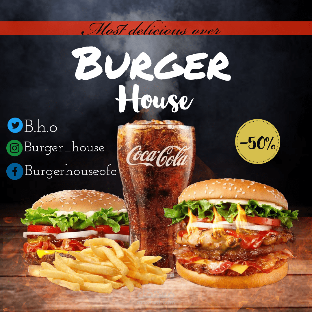 يمثل سوشل ميديا بوست يروج لعرض تخفيضي مبينا ميزات المنتج و هو burger house.