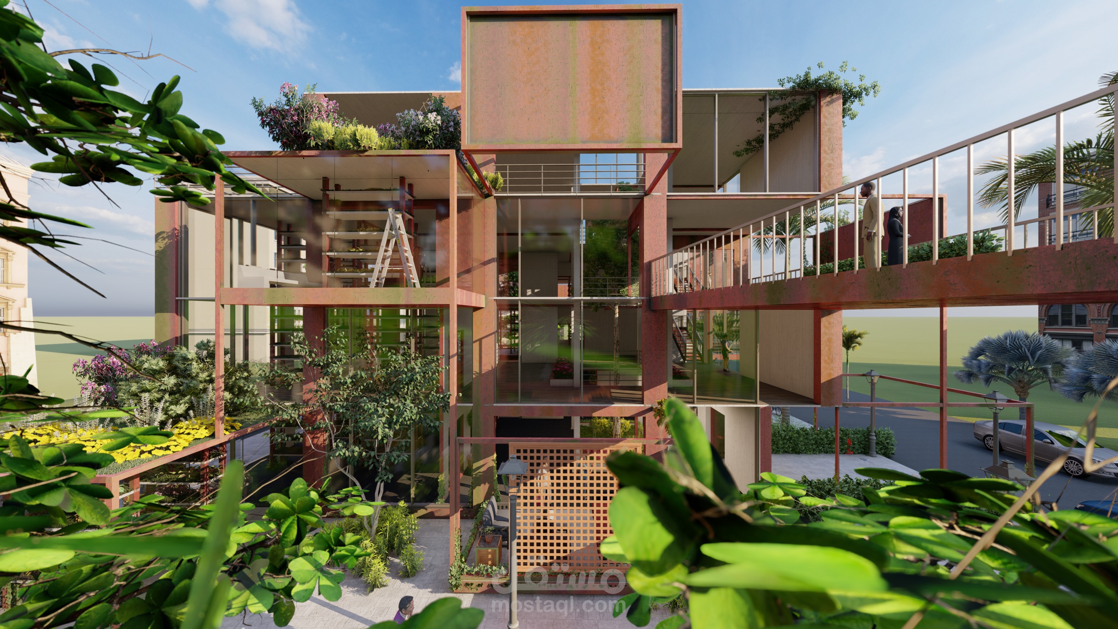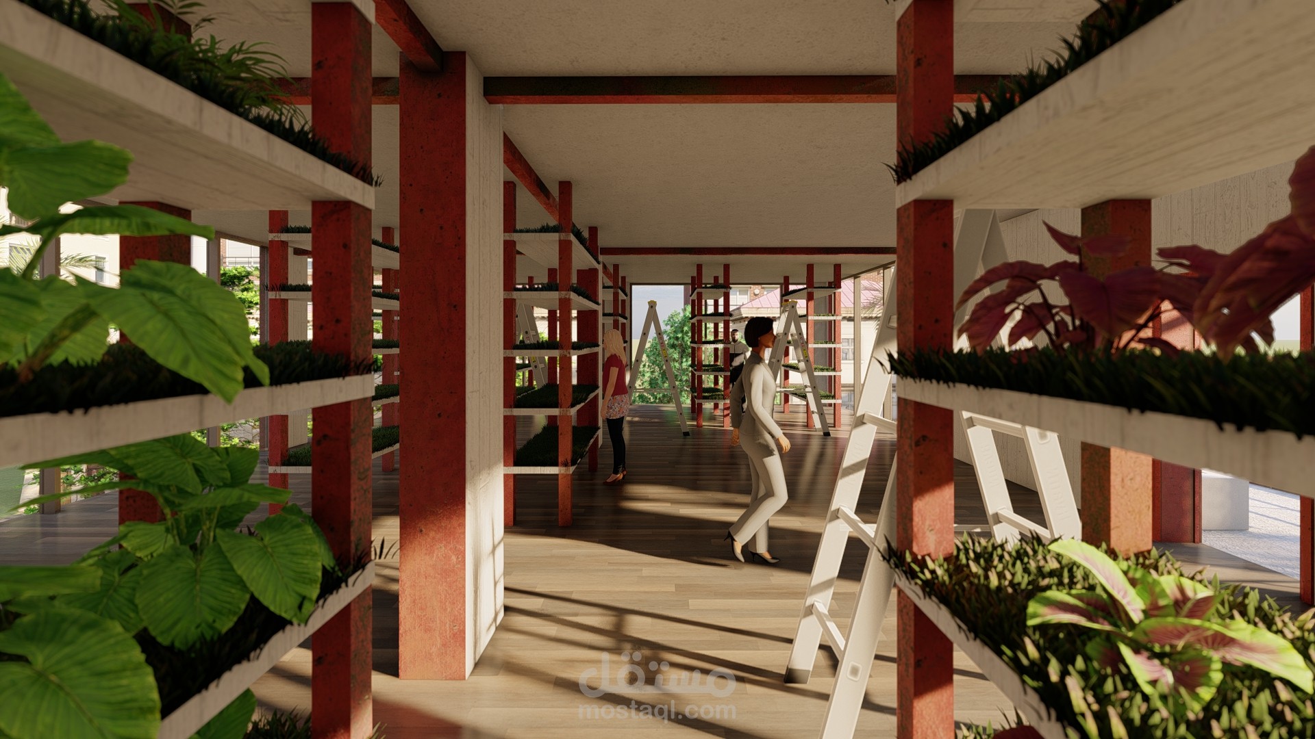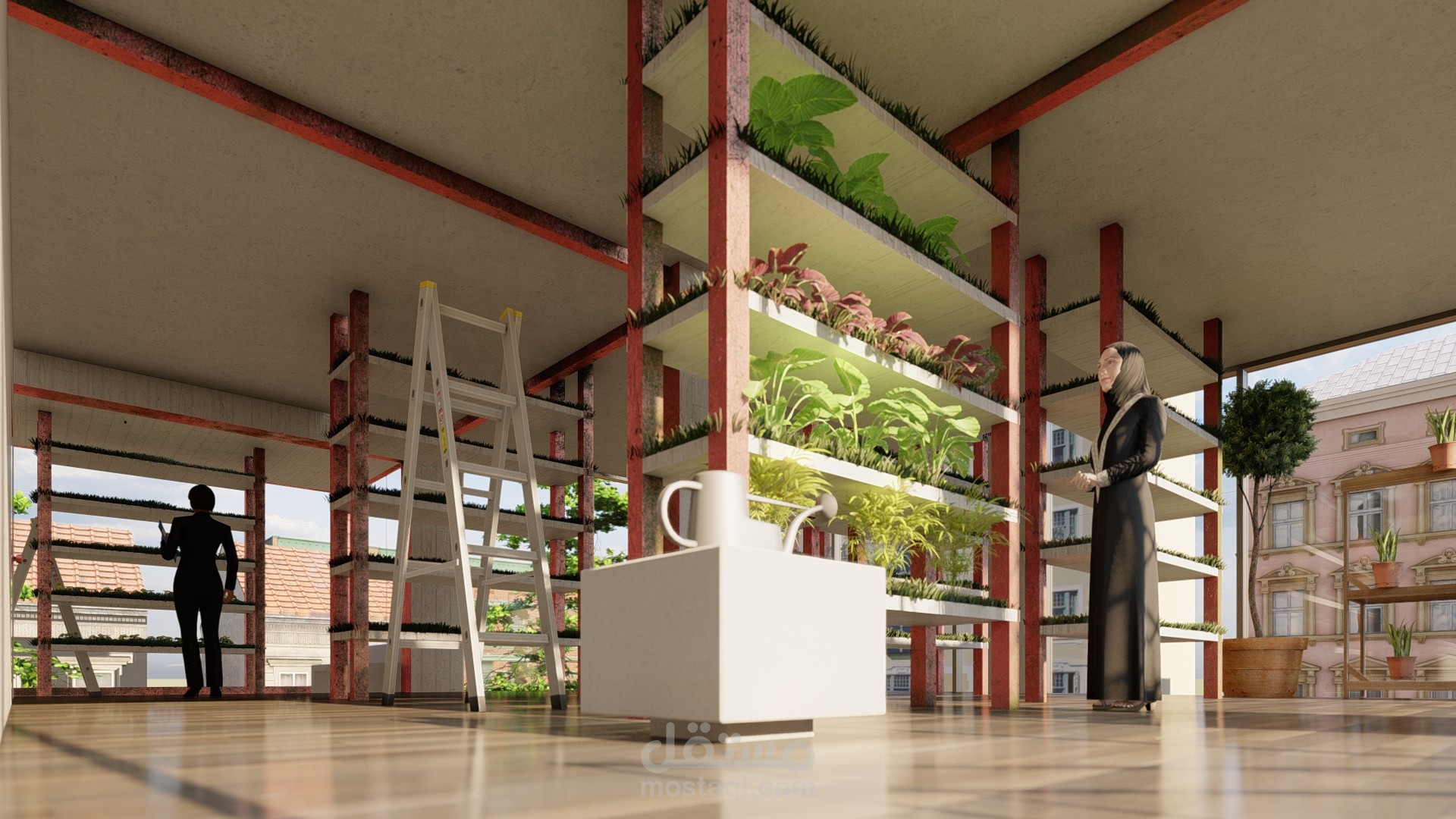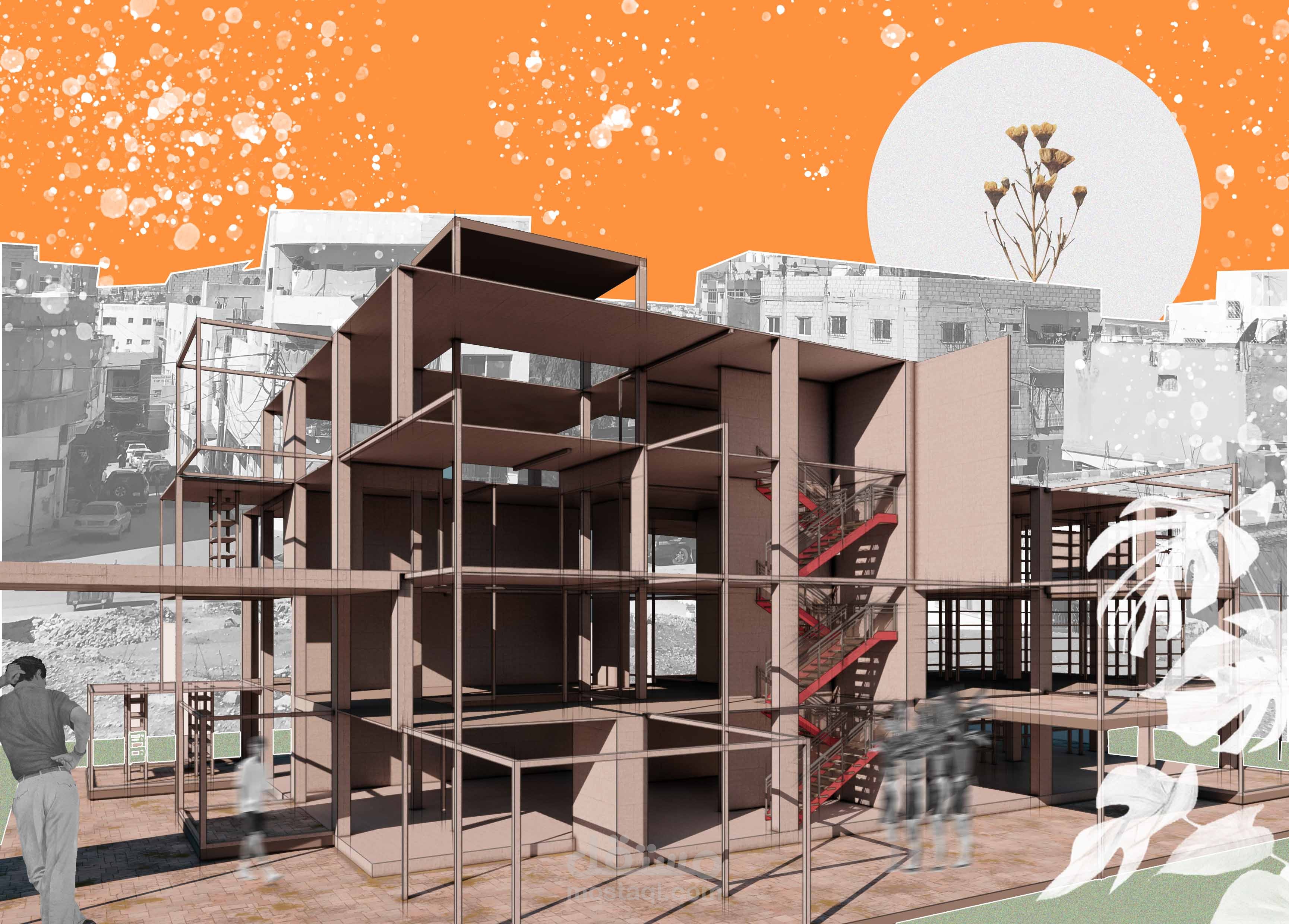 اعادة استخدام مبنى قديم ك مزرعة عامودية بمساحة 320 متر مربع لكل طابق, تعمل بتشارك مع مشروع السوق الافقي.