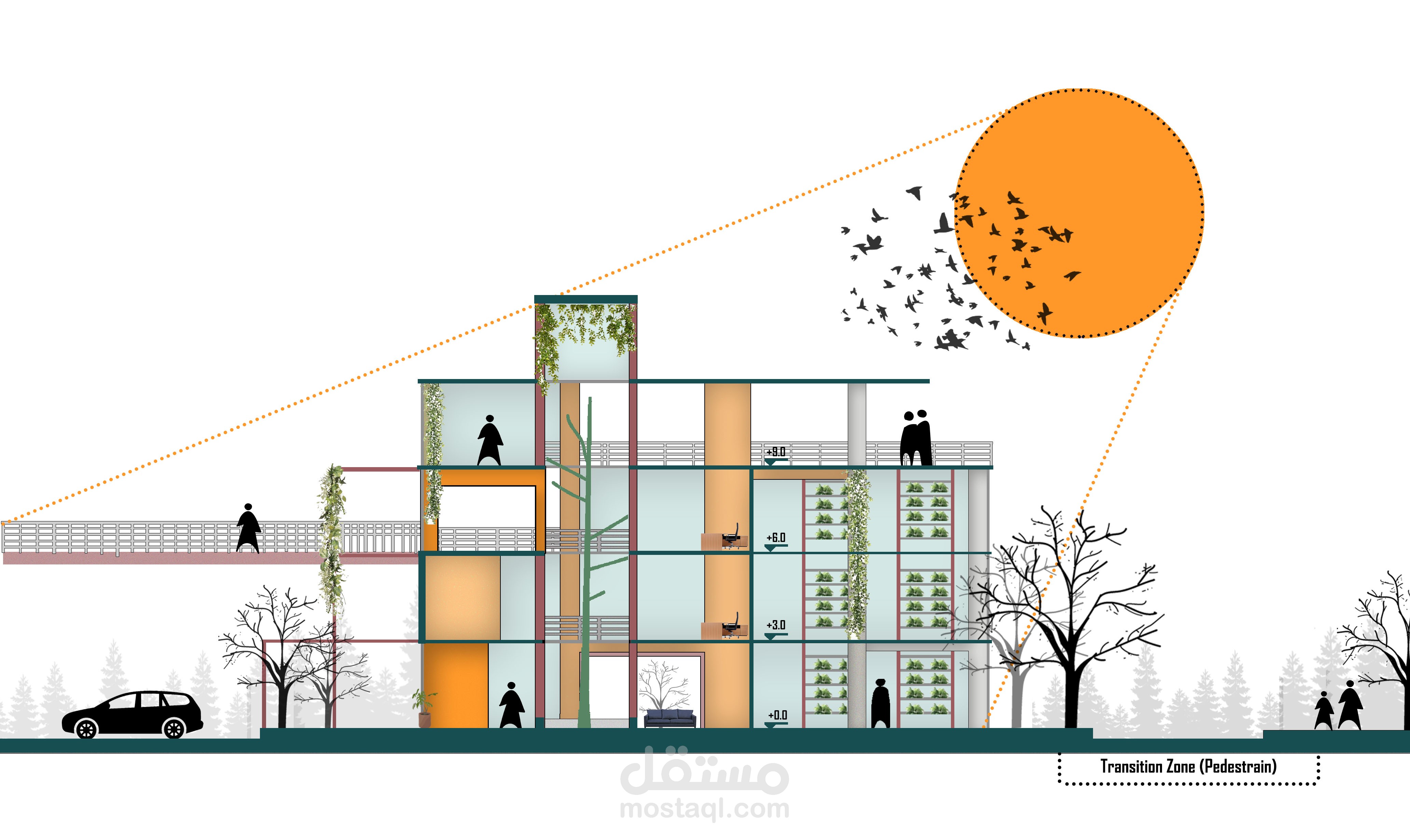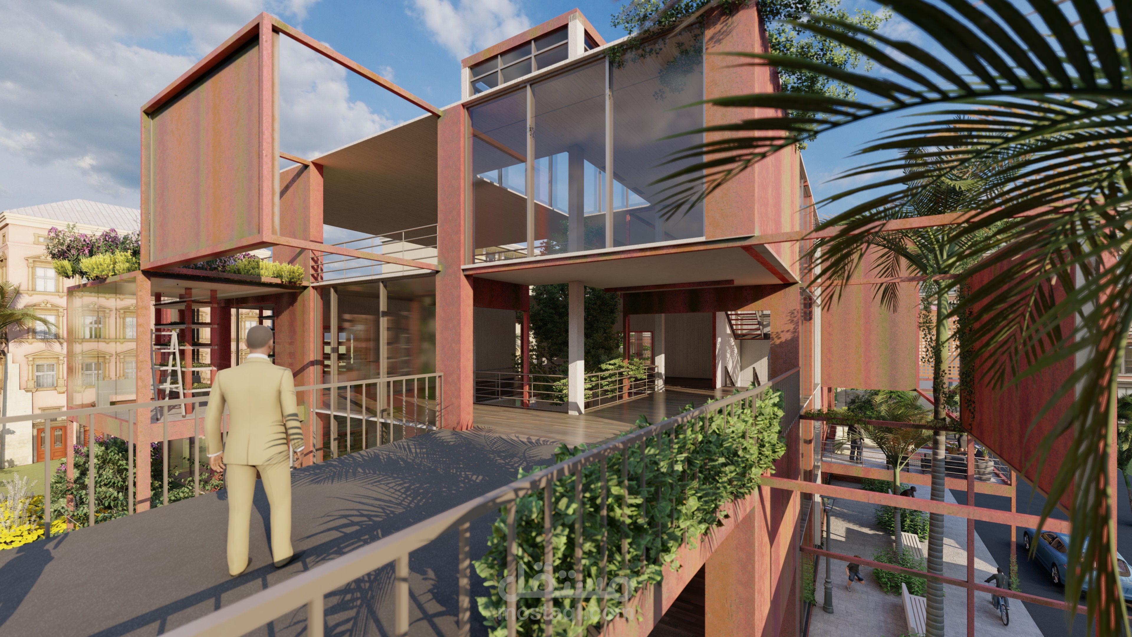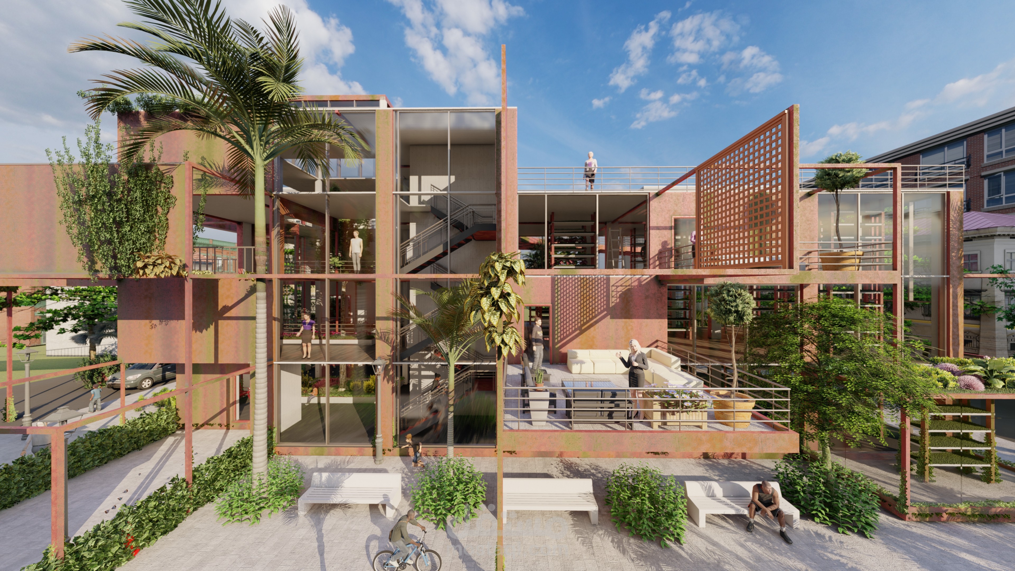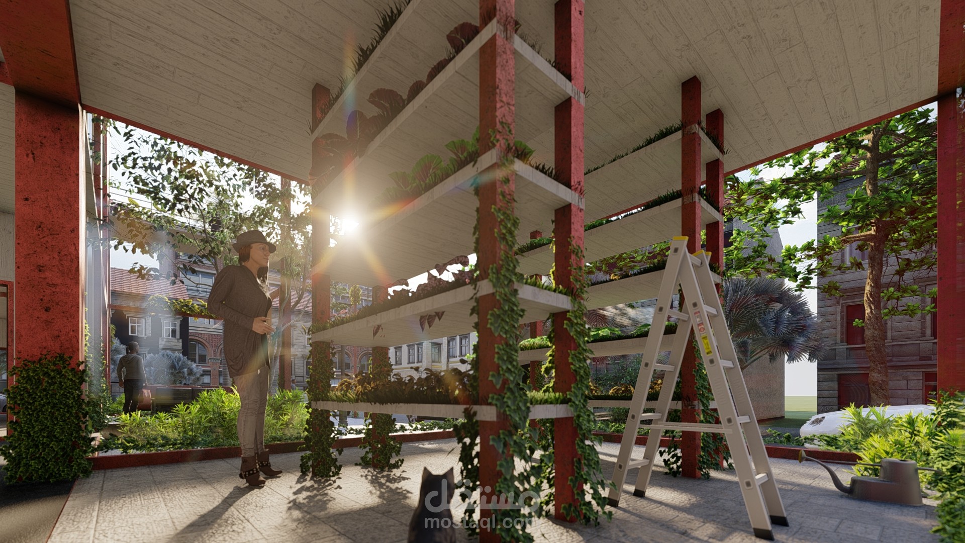 اعادة استخدام مبنى قديم ك مزرعة عامودية بمساحة 320 متر مربع لكل طابق, تعمل بتشارك مع مشروع السوق الافقي.