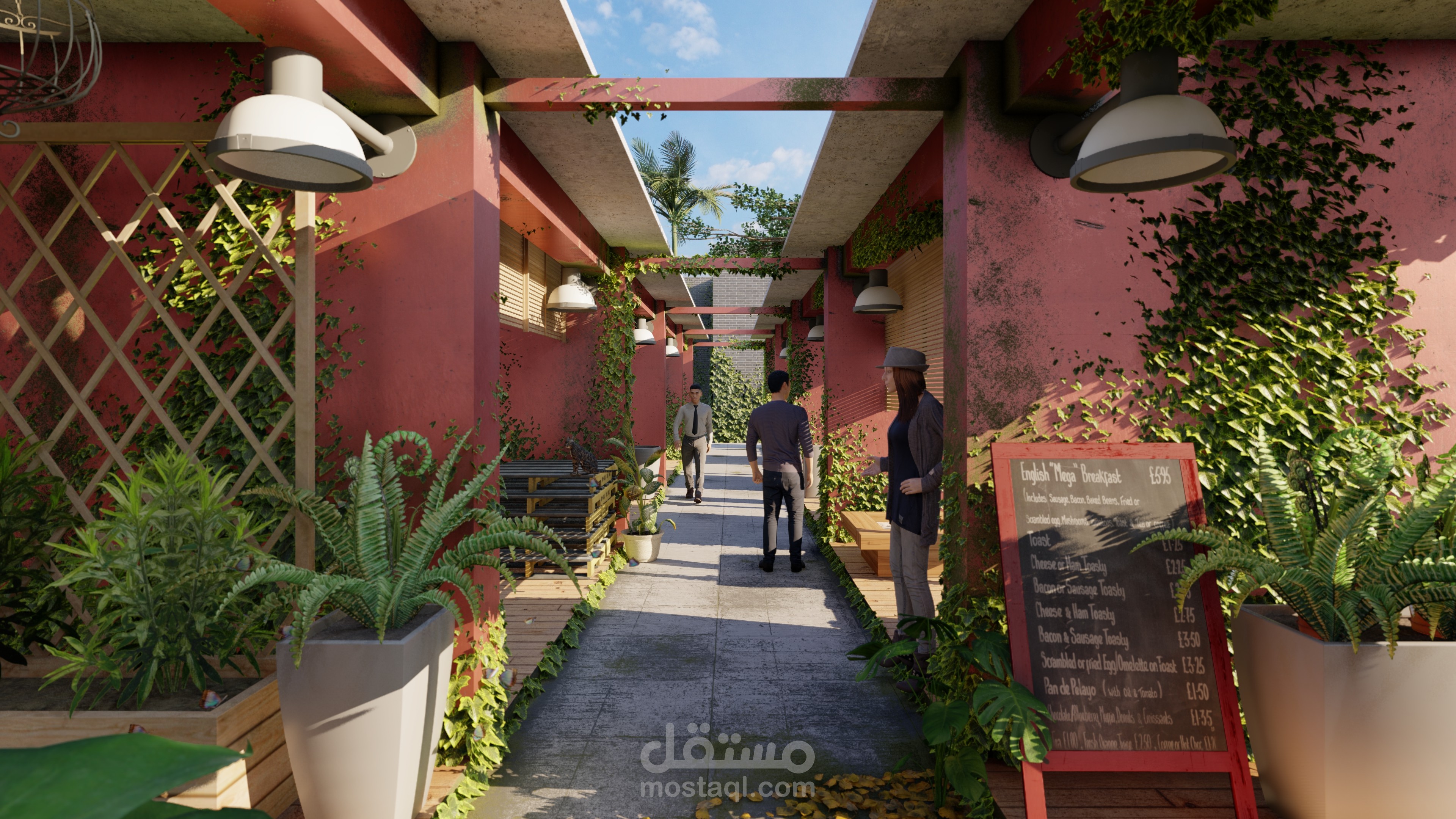 السوق الافقي هو مشروع متكامل مع مشروع المزرعة العامودية, وهو عبارة عن مجموعة من المتاجر المصغرة لبيع السلع من المزرعة العامودية.