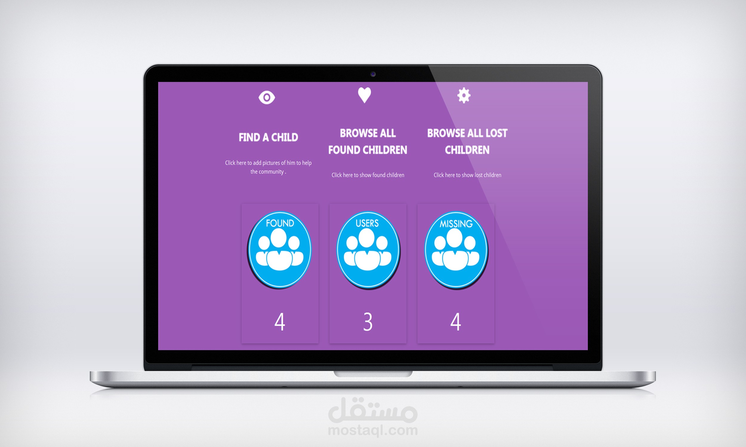 موقع إلكتروني مصمم من قبل فريق عمل إنسبيركس كجزء من نظام يتكون من موقع إلكتروني وDatabase وتطبيق للهواتف و Admin Panal يعمل كـcommunity لإيجاد الأطفال المفقودين.