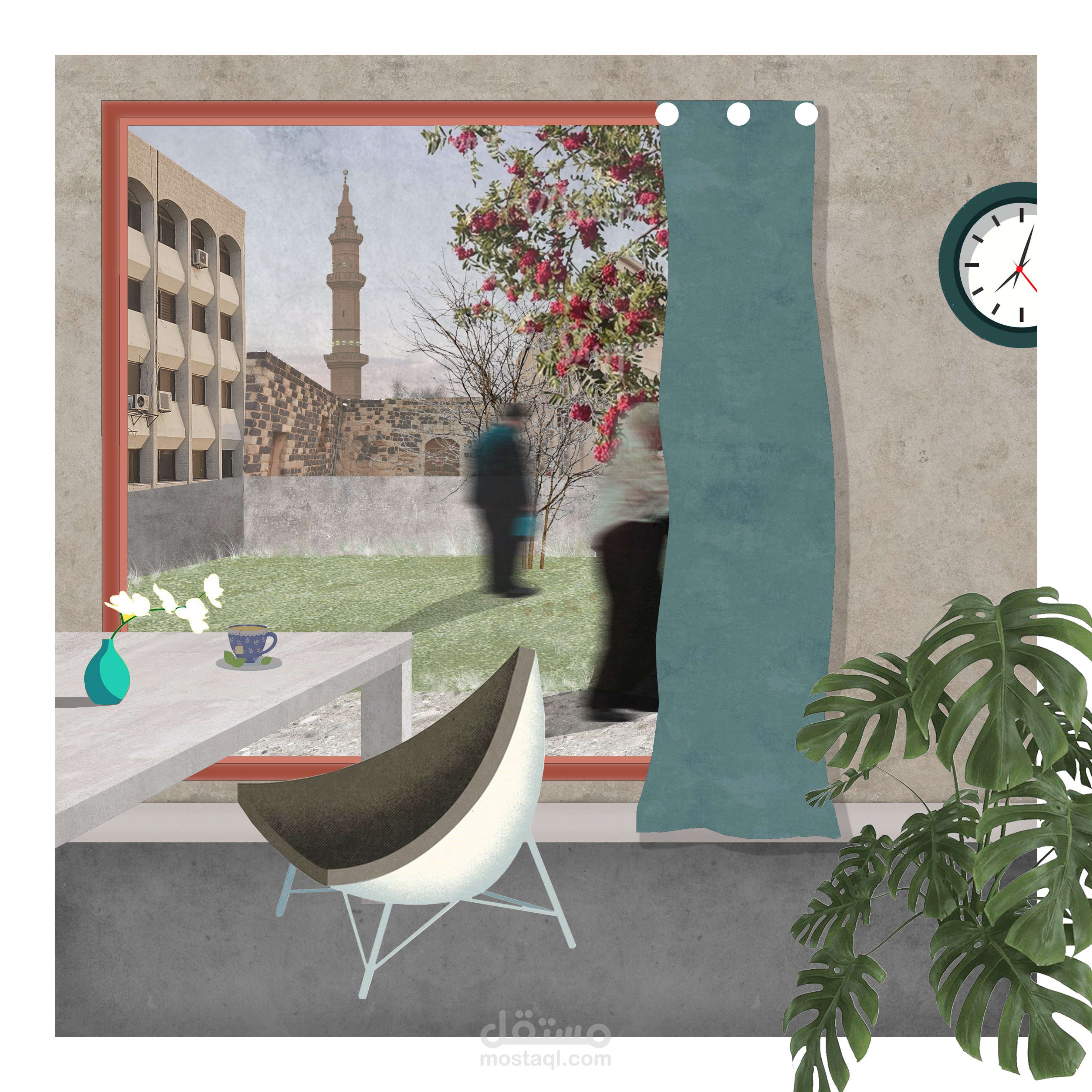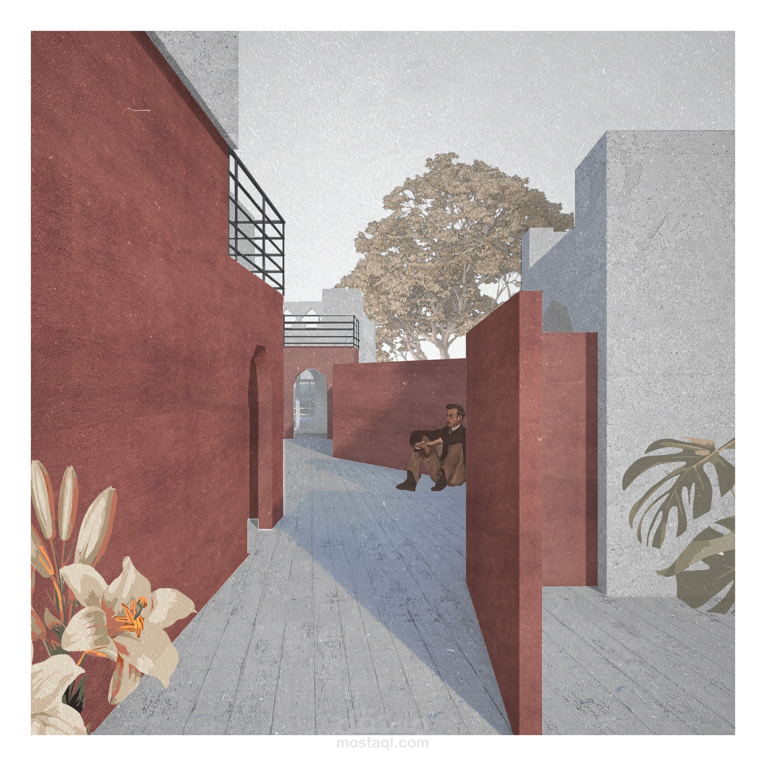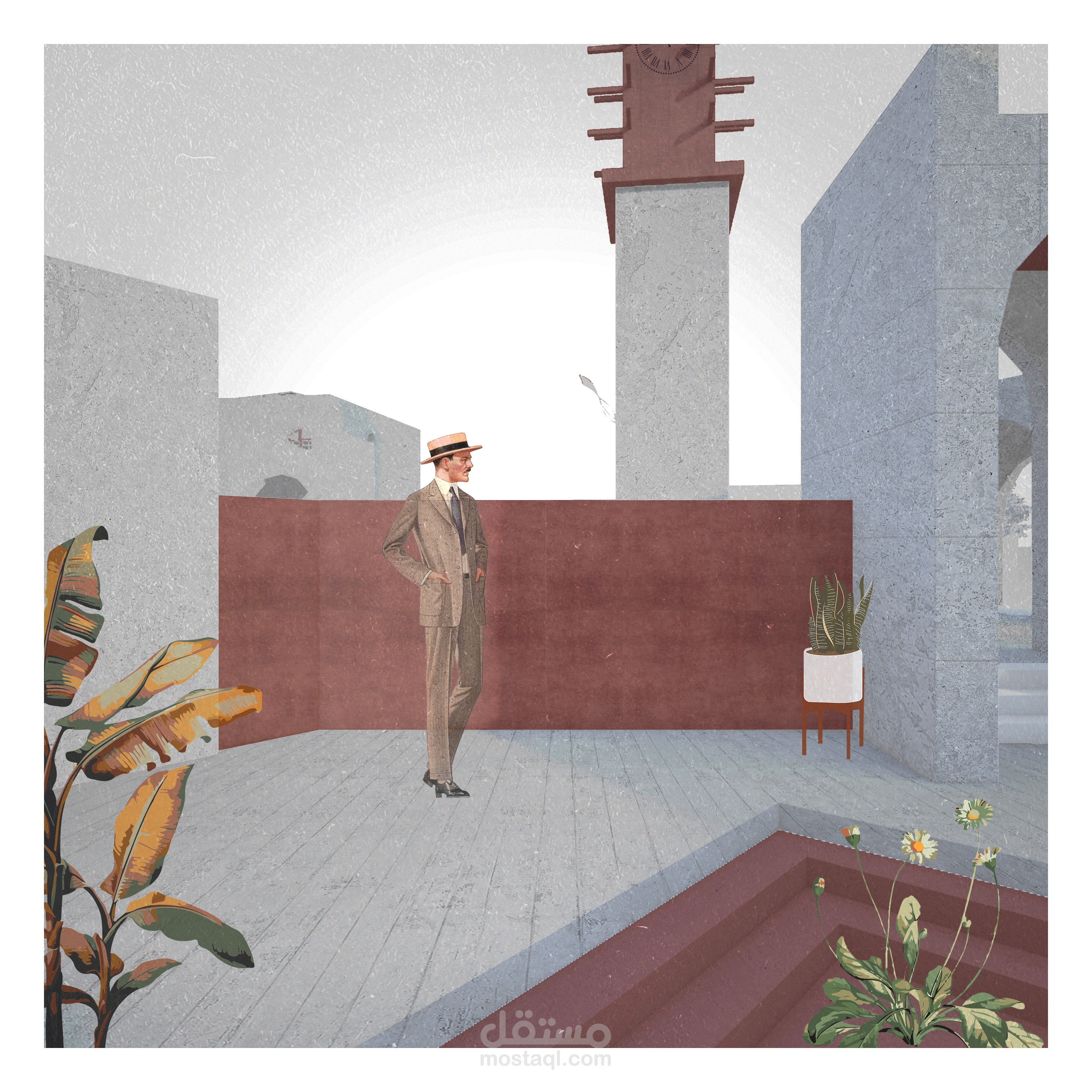 طريقة الPost digital collages لاظهار المشاريع بطريقة فنية معمارية.