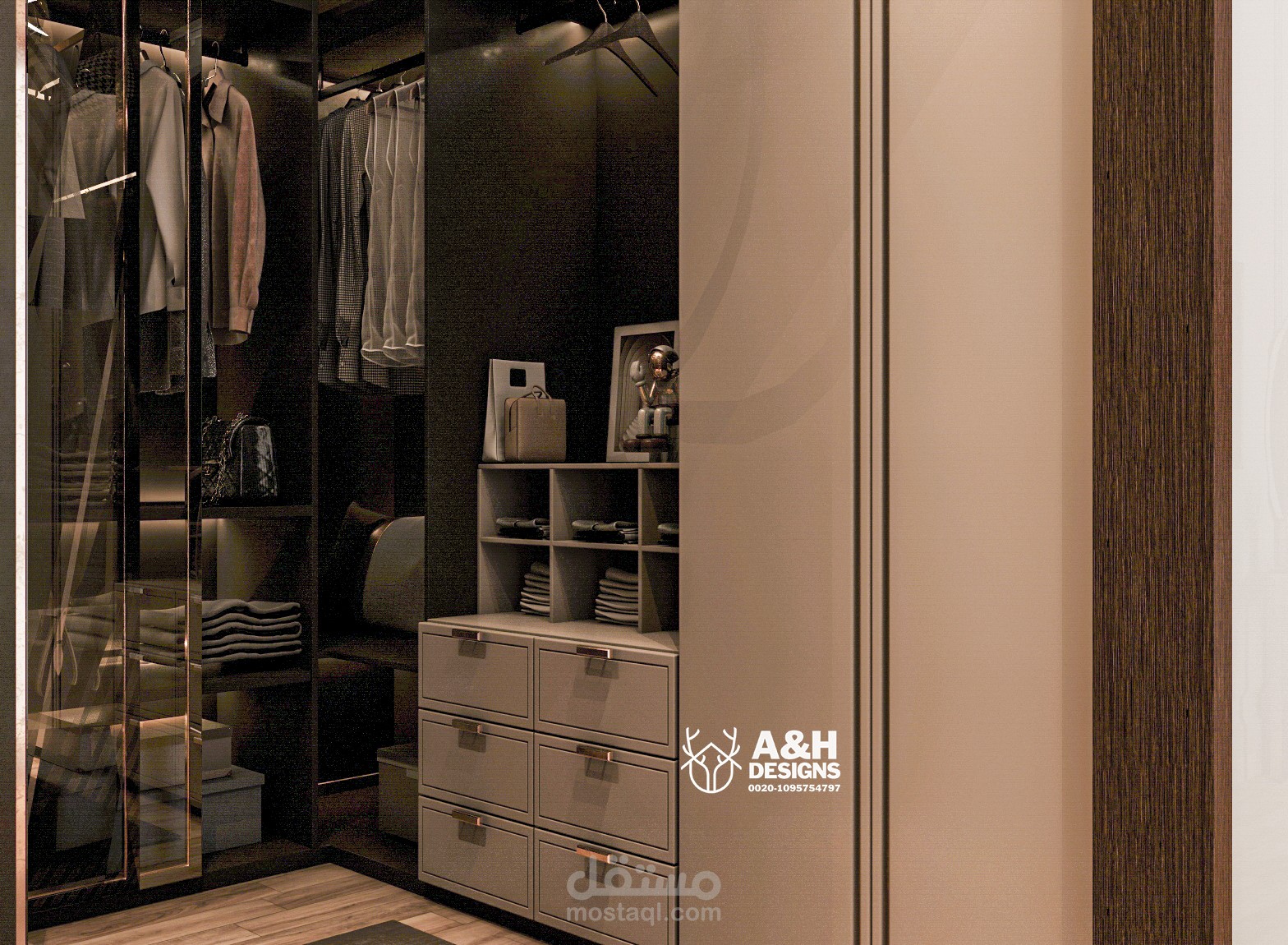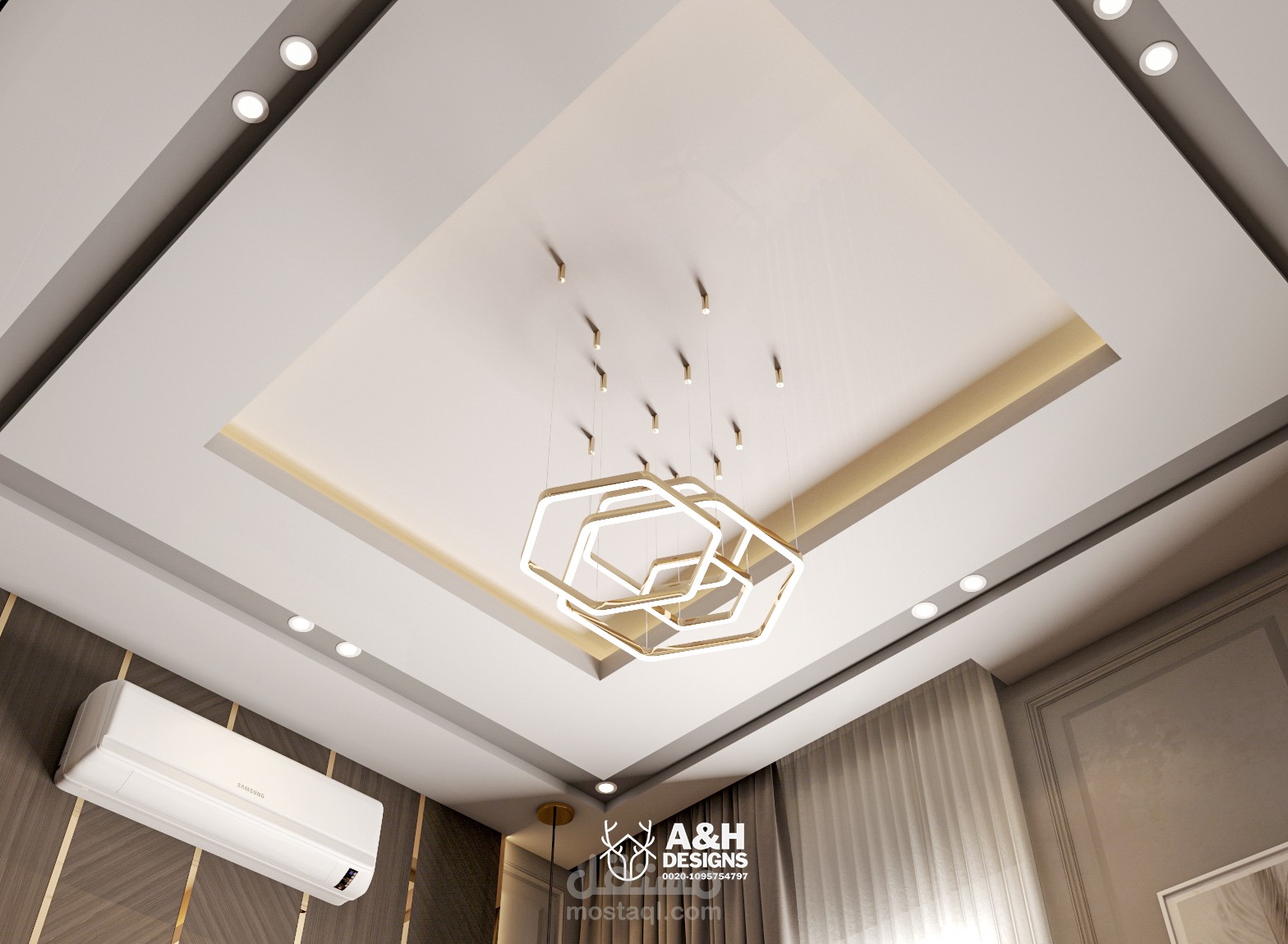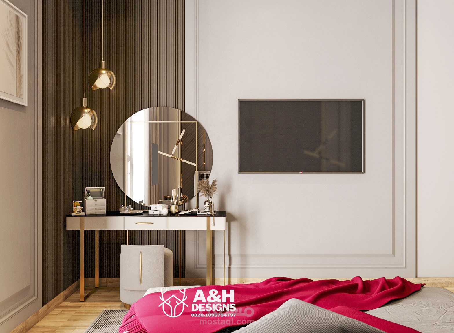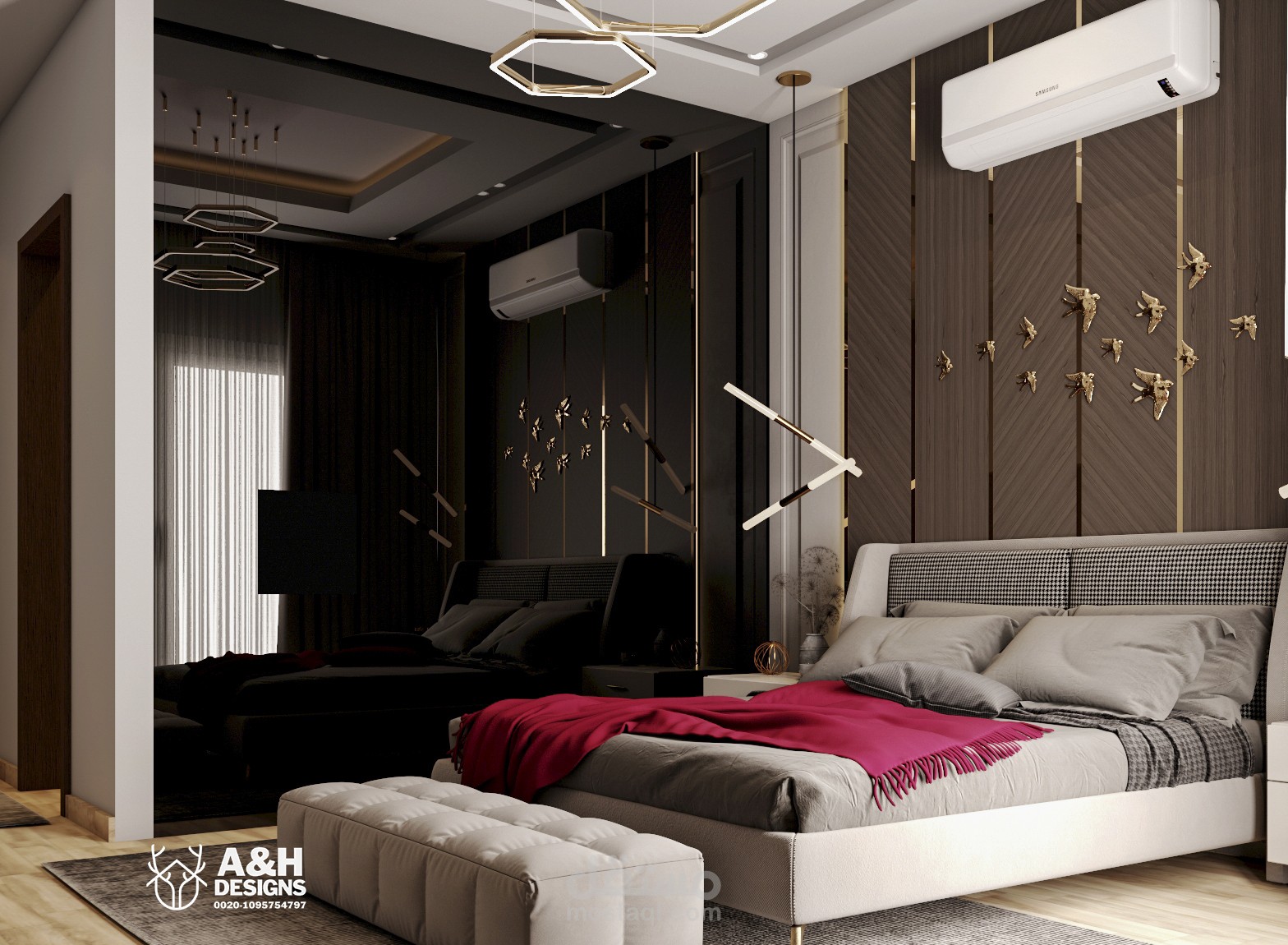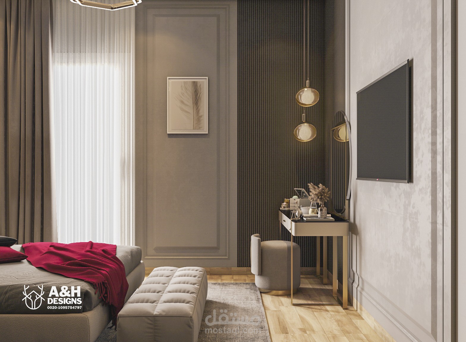 تصميم راقى لغرفة نوم رئيسية بذوق هادئ