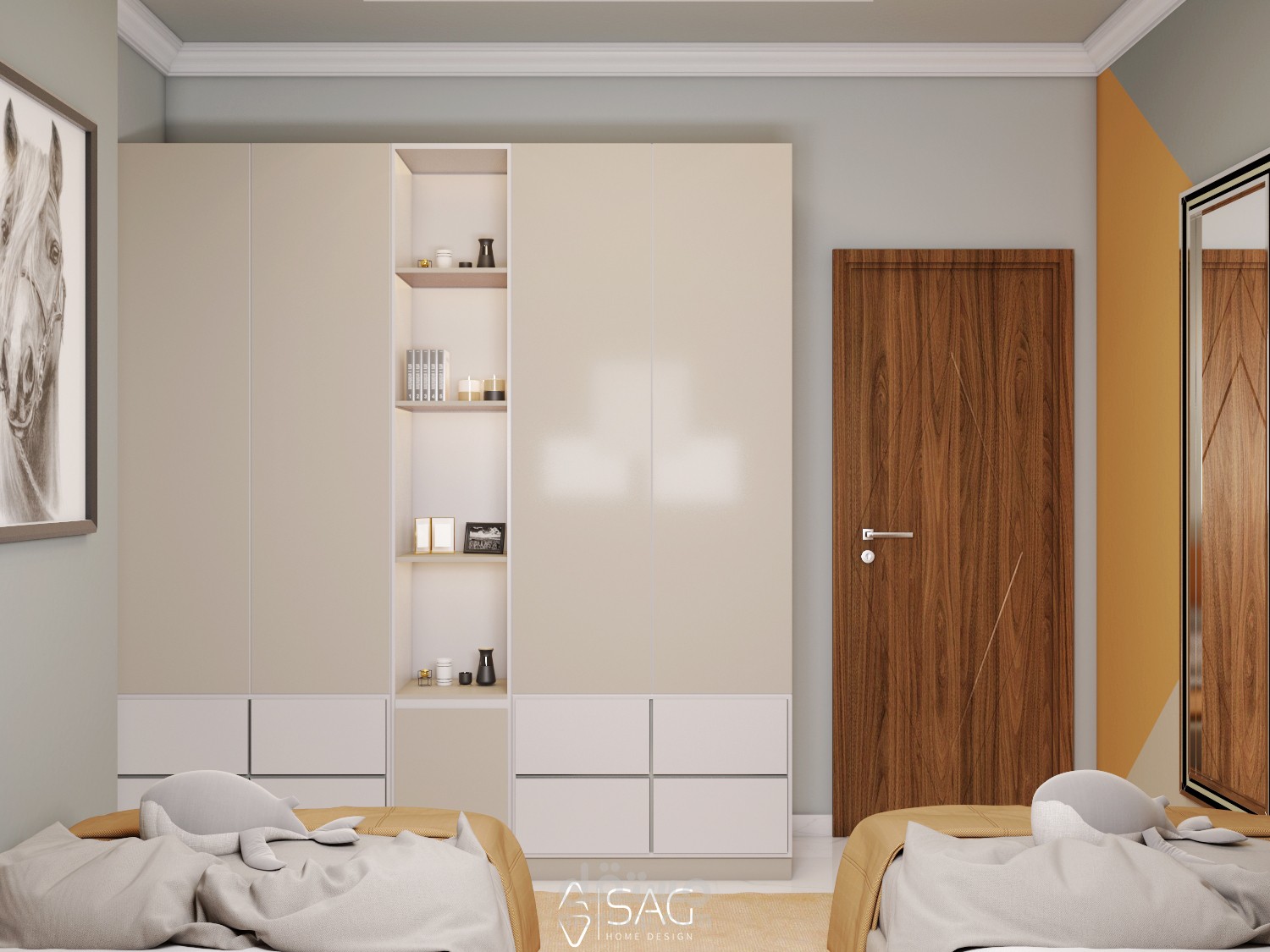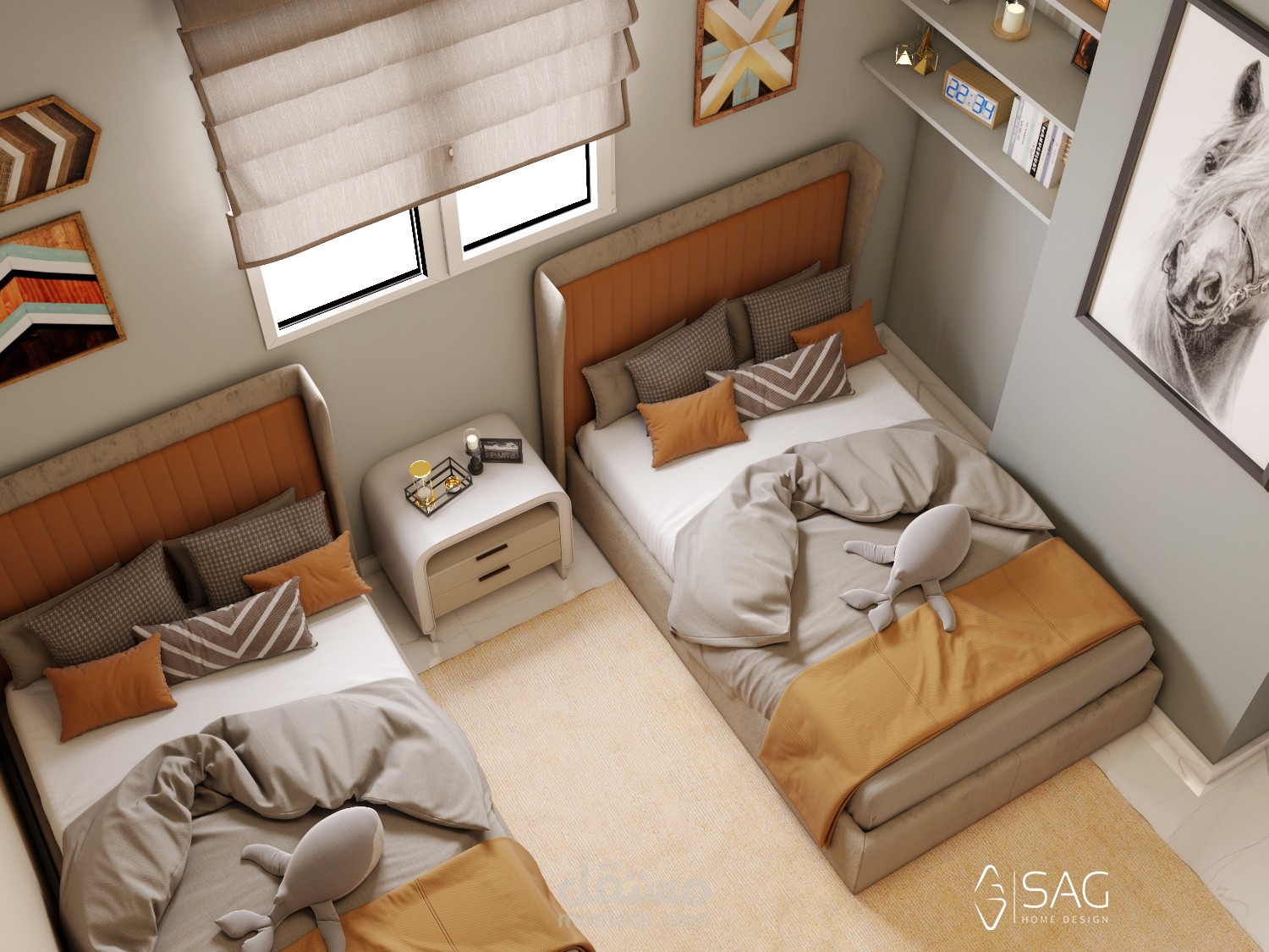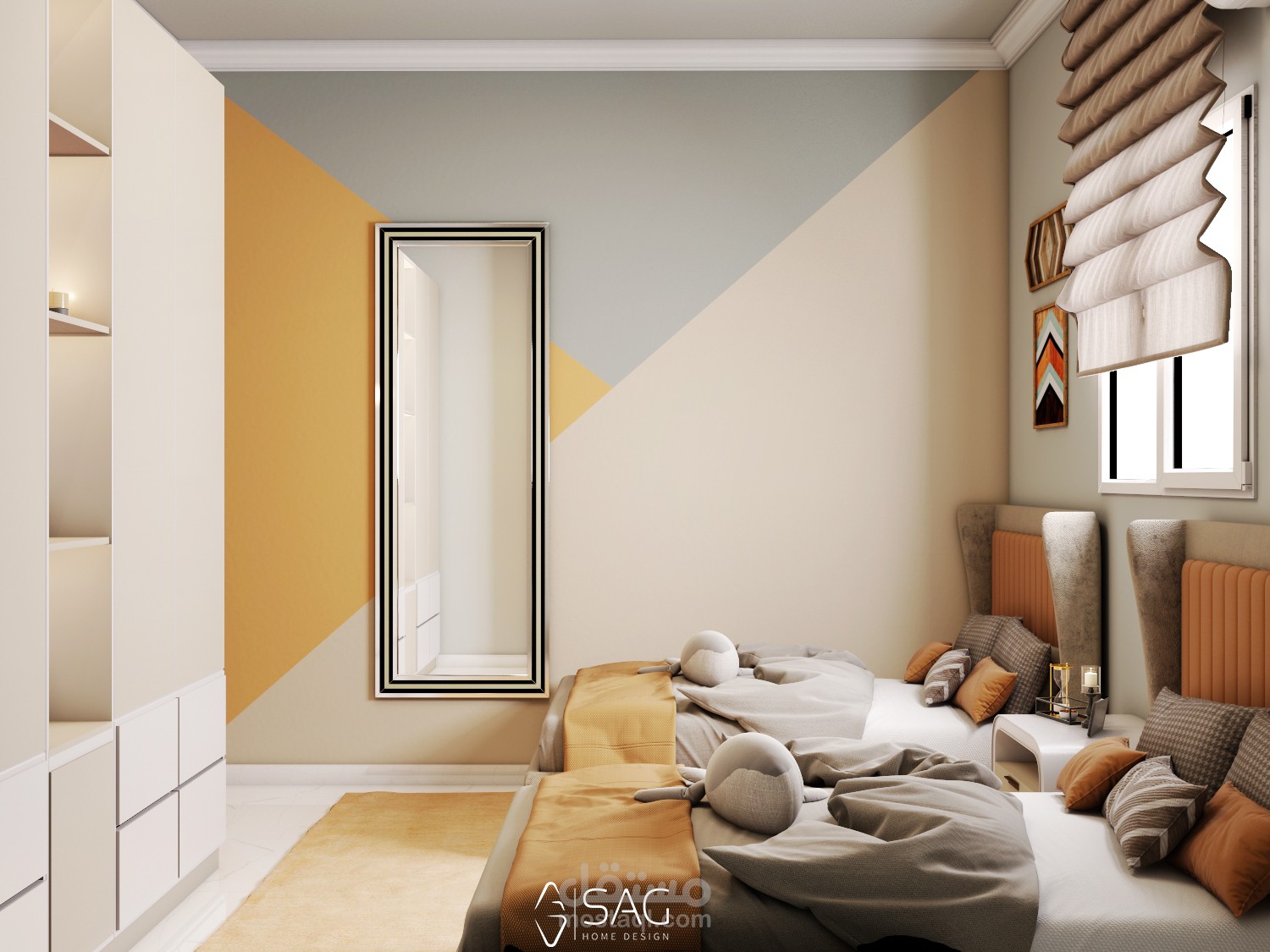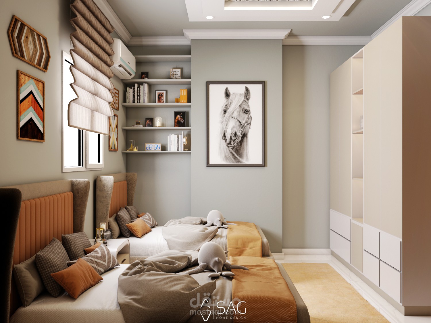 تصميم هادئ وبسيط لغرفة اولاد
