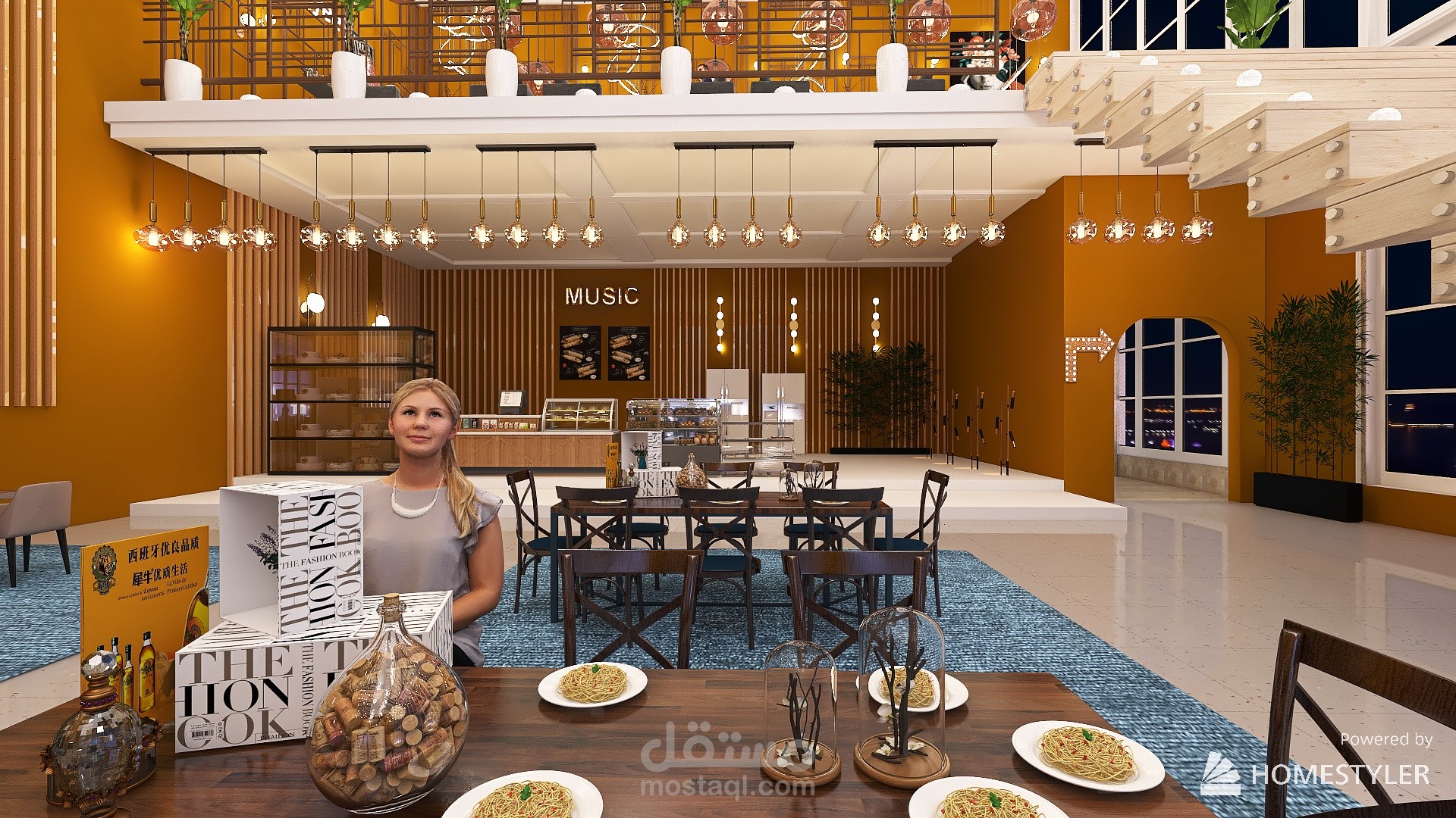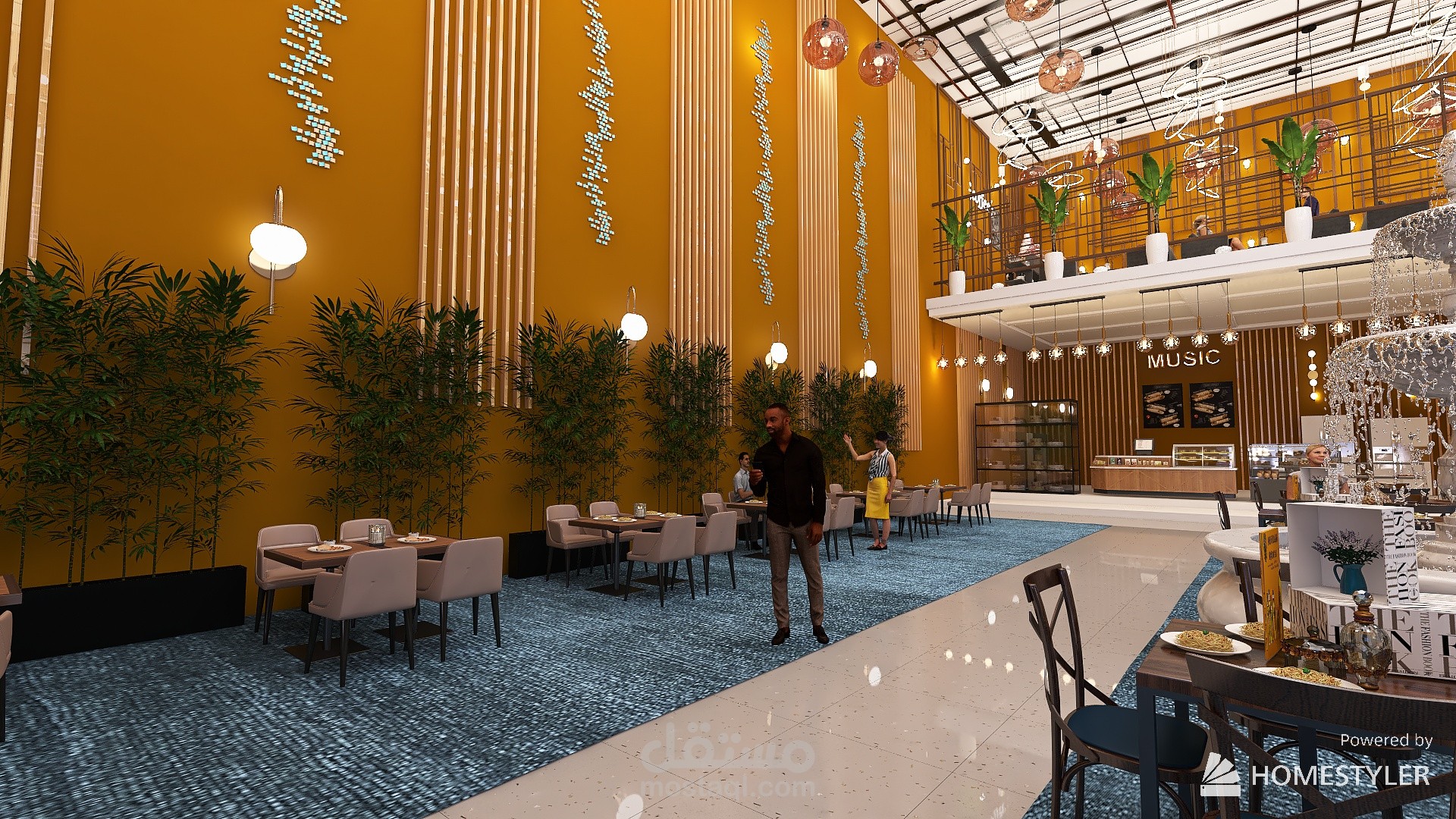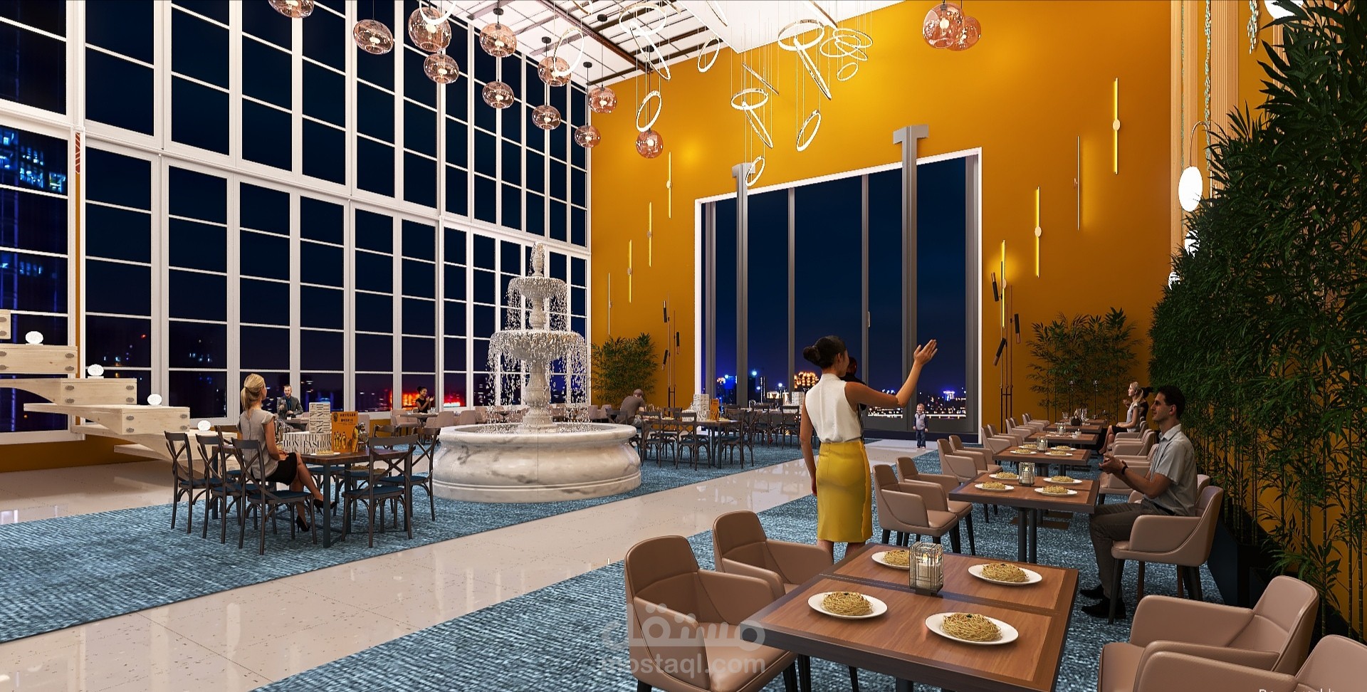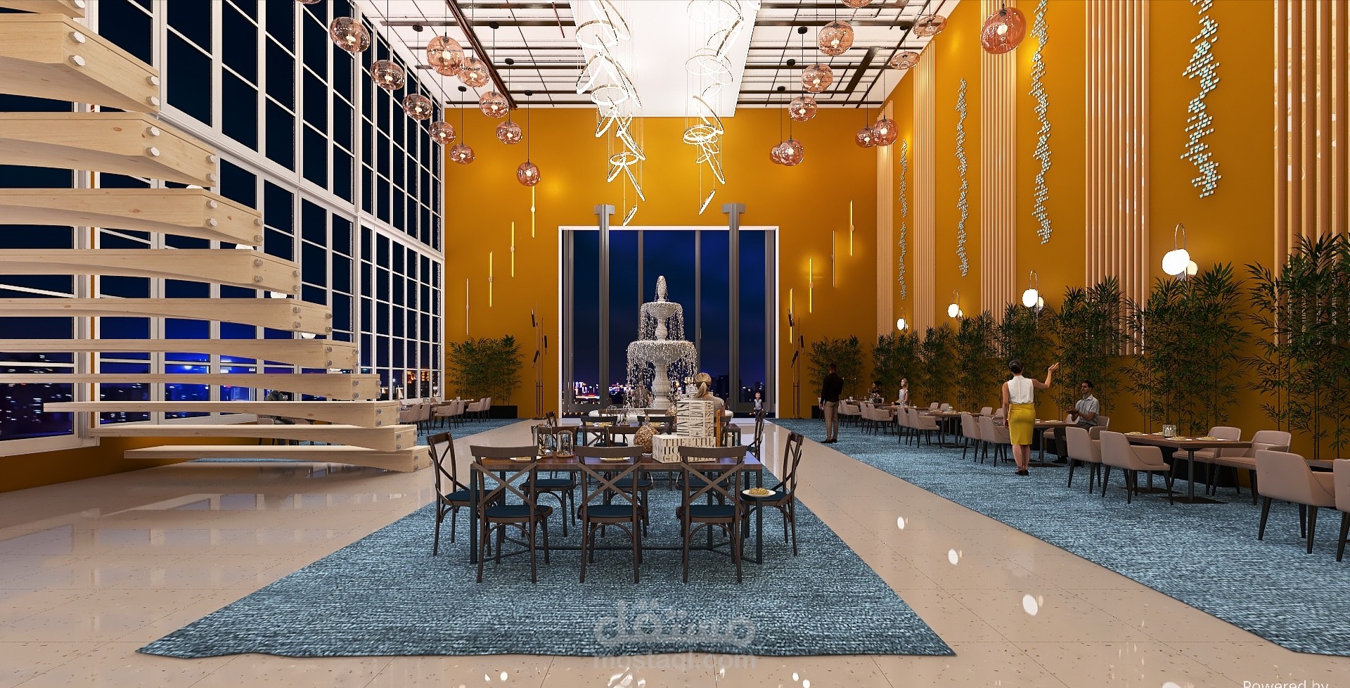 تصميم داخلي لمطعم و كافيه في الطابق العلوي