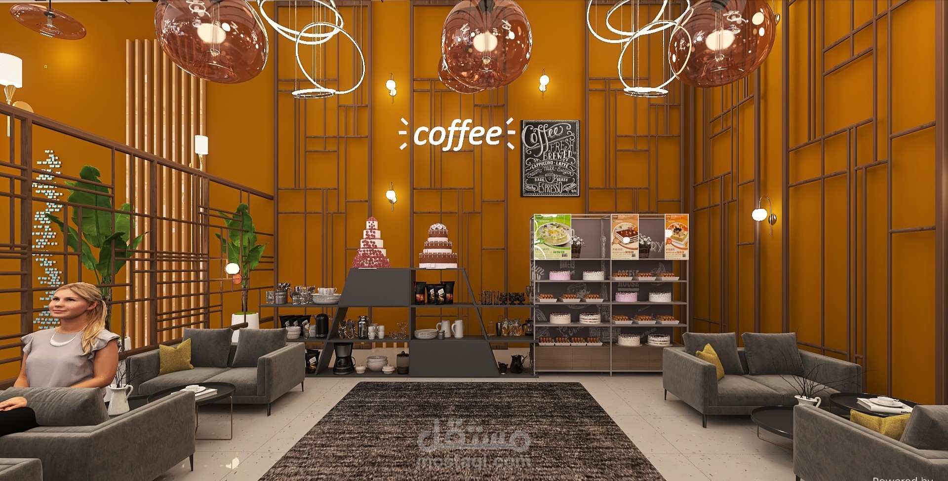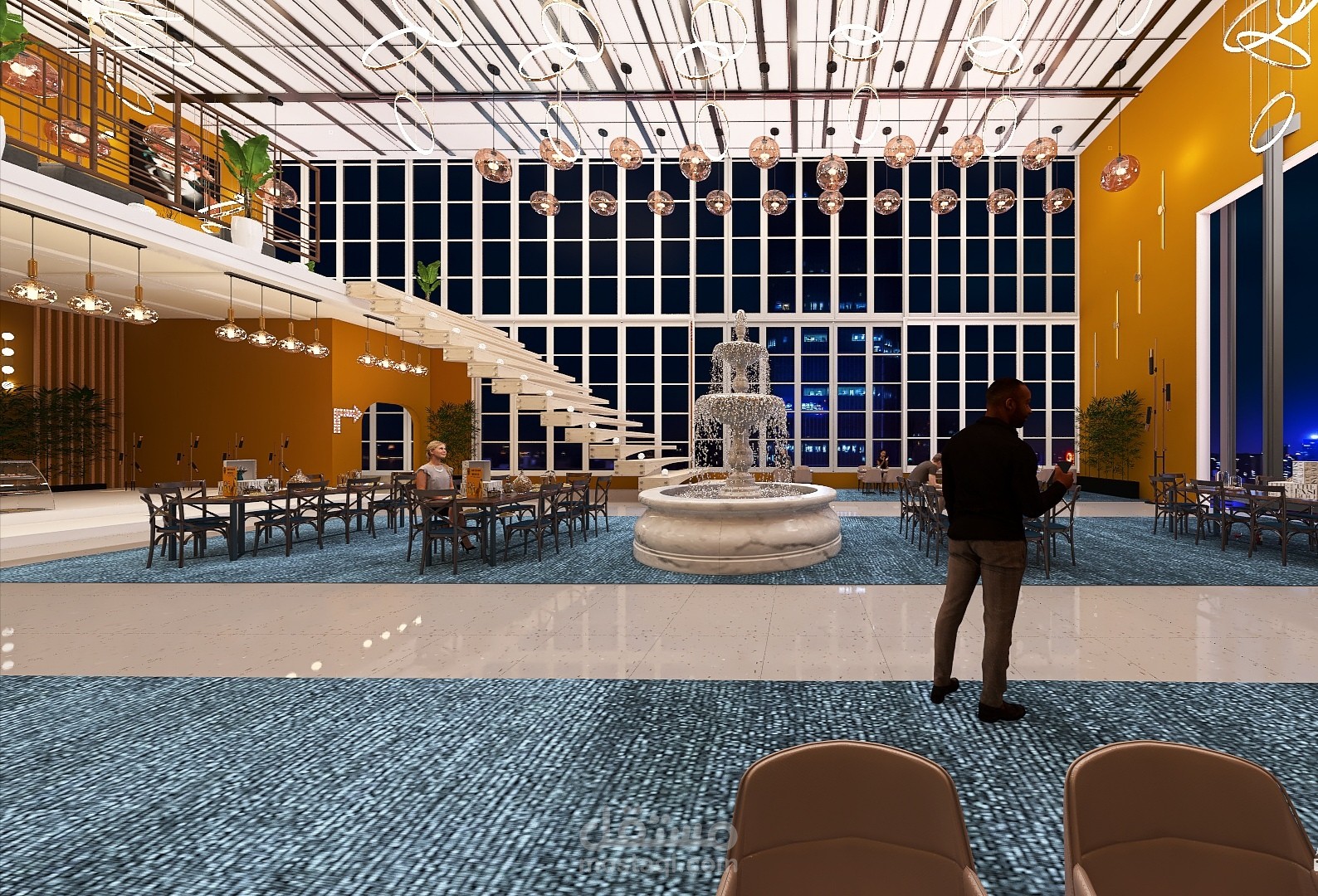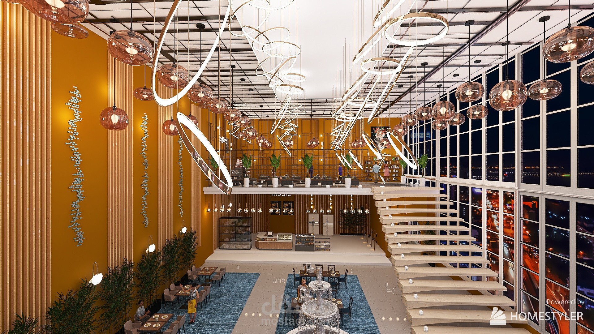 تصميم داخلي لمطعم و كافيه في الطابق العلوي