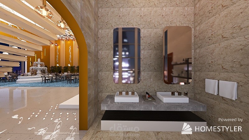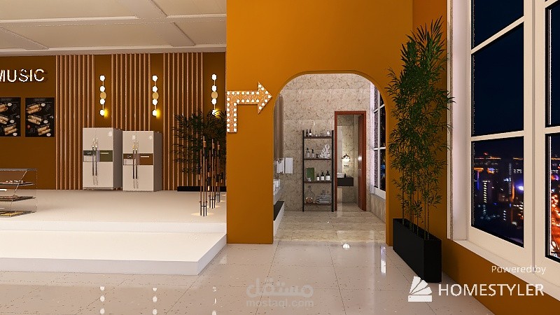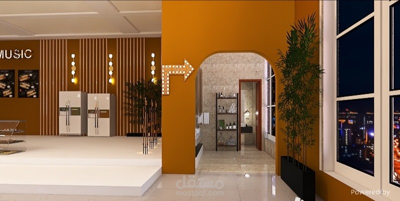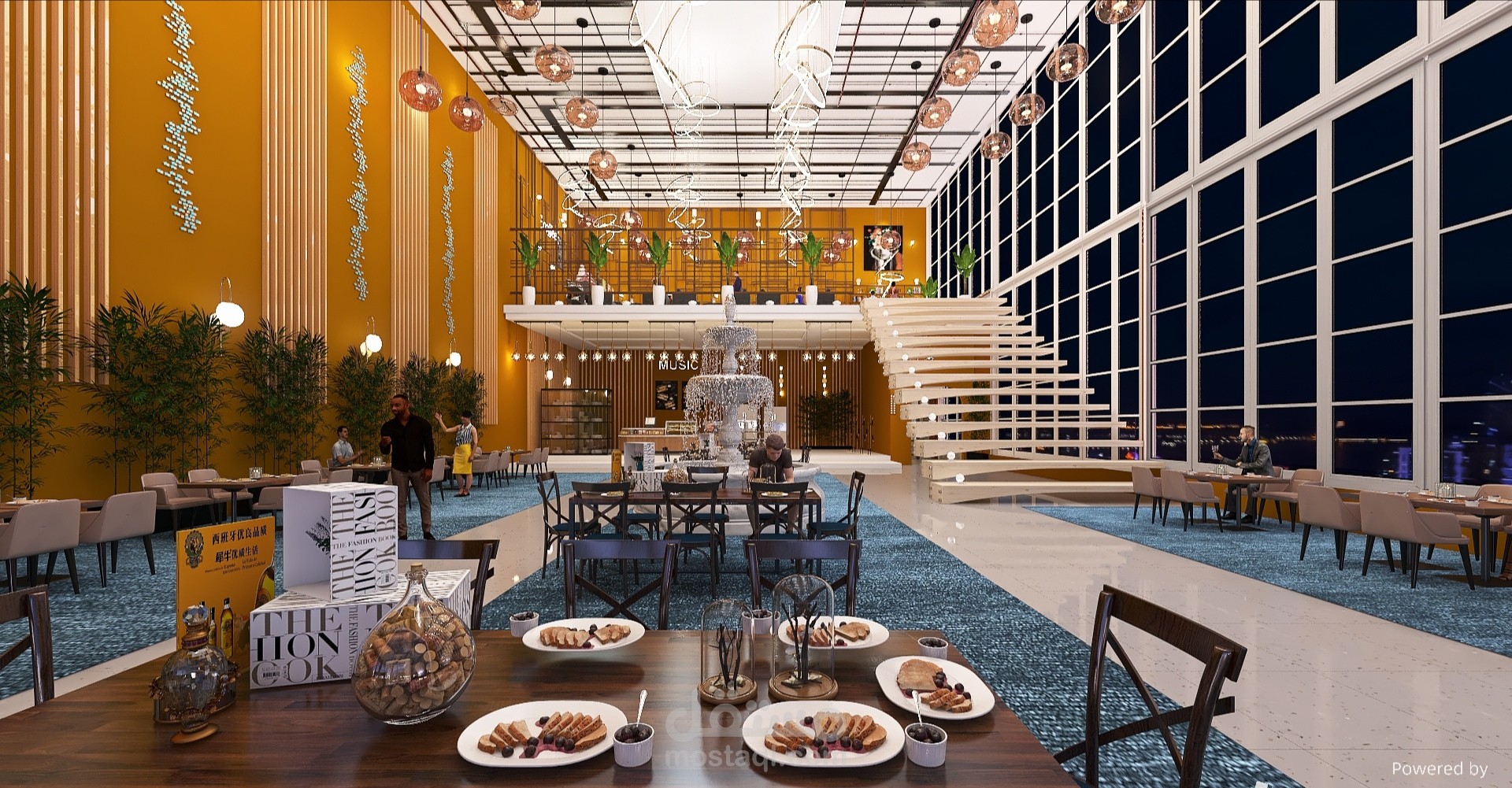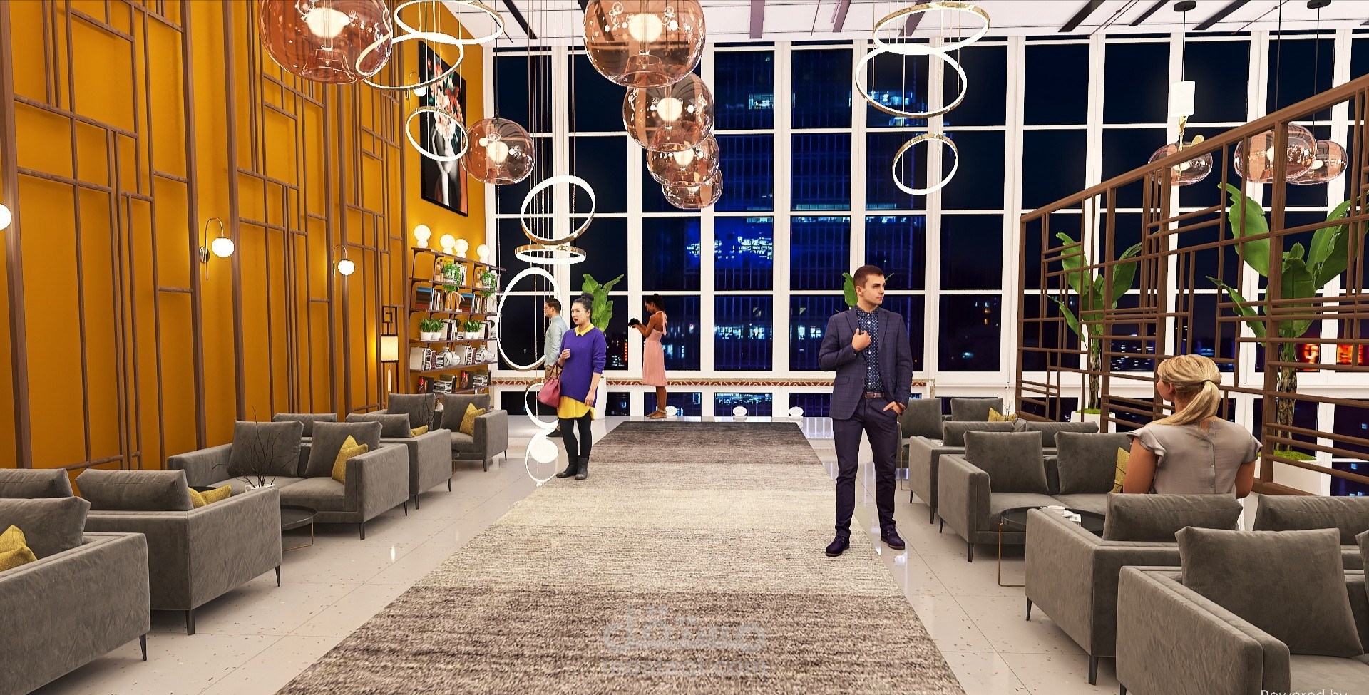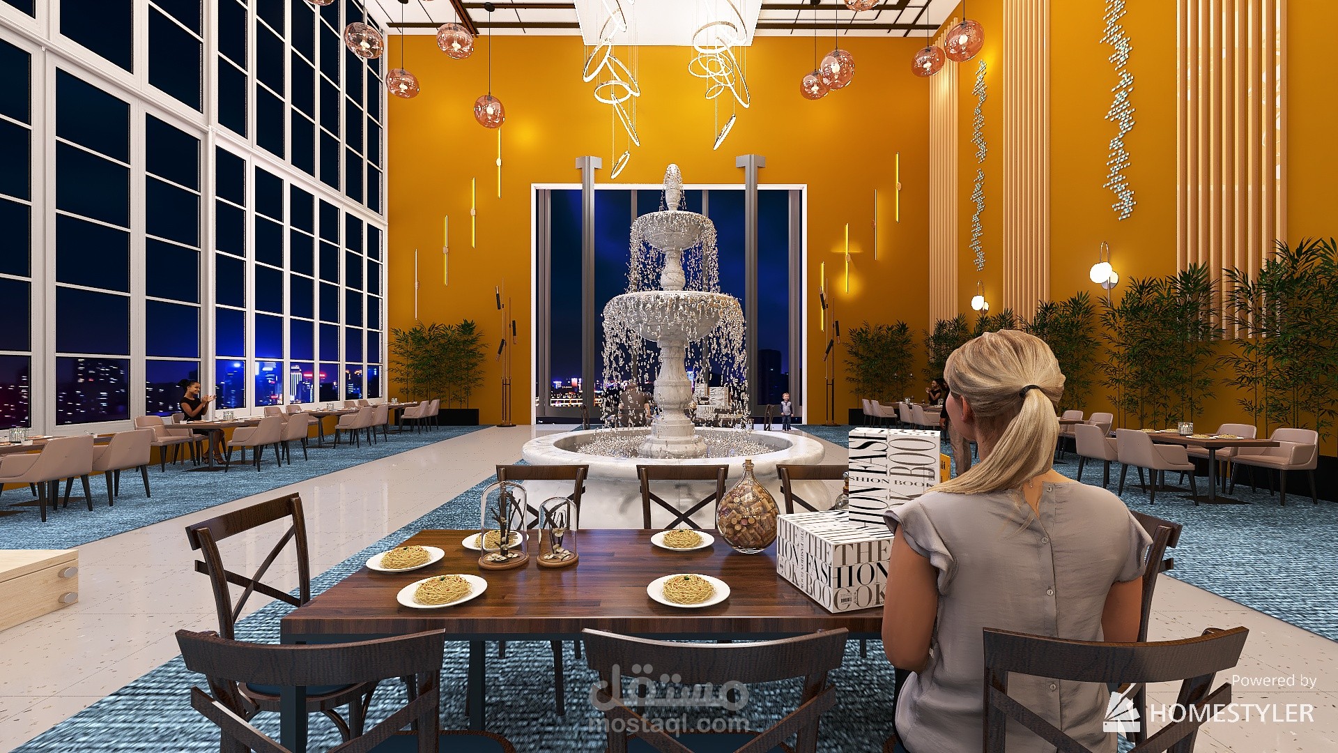 تصميم داخلي لمطعم و كافيه في الطابق العلوي