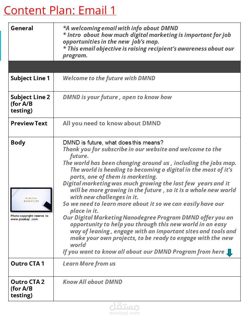 * This is my market with email project during my learning journey in Digital Marketing Nanodegree from Udacity.