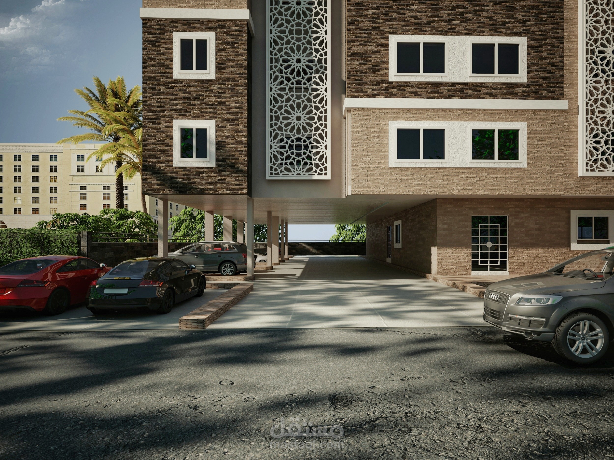 التصميم الخارجي لبناية سكنية - في المملكة العربية السعودية.