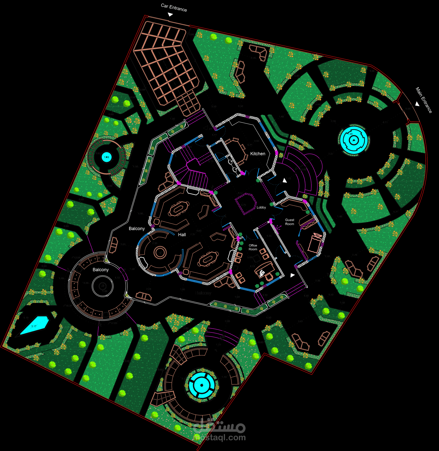 تصميم فيلا سكنية لصالح أحد العملاء - في سوريا، تعتمد على تحقيق كافة متطلبات التصميم والمساحات الخاصة بالعميل، مع العمل على تصميم لاندسكيب لمحيط الفيلا بأفكارعصرية وتعتمد على فرق المناسيب.