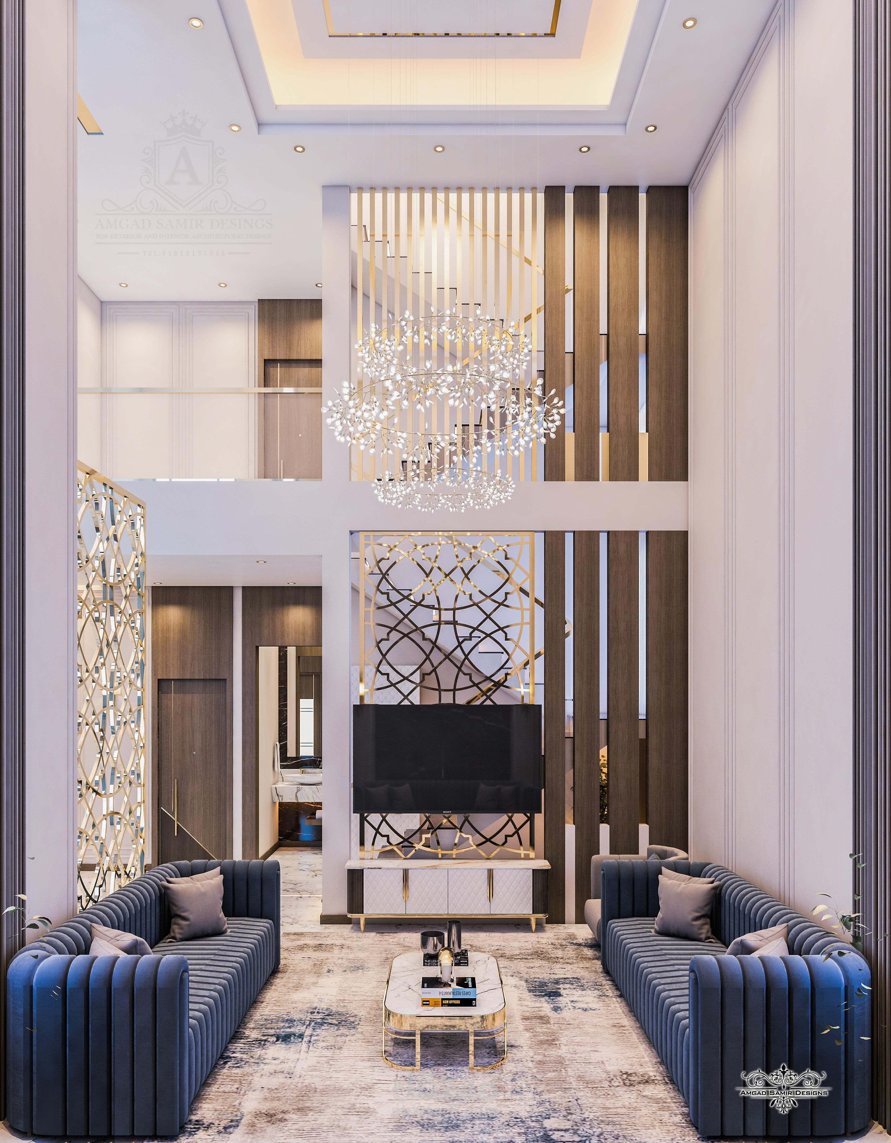 تصميم صالة دبل هايت بطراز النيوكلاسيك مودرن