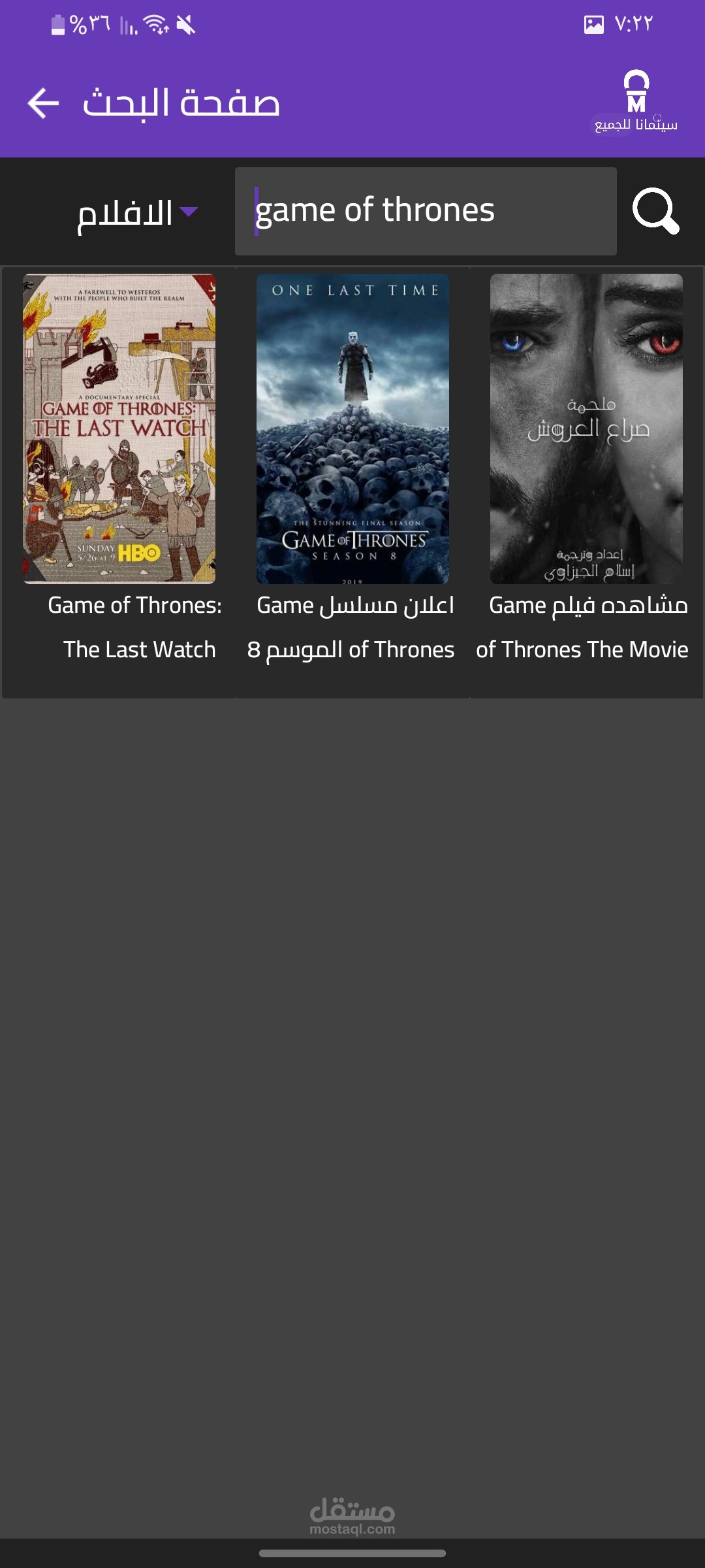 تطبيق سينمانا للافلام و المسلسلات و الانمي، تطبيق قمت بتطويره من الصفر يتيح للمستخدم مشاهدة و تحميل اي فيلم او انمي او حلقة يريده و بتصميم عصري و جميل، و يتم اضافة اي فيلم او حلقة او انمي بشكل اوتوماتيكي حالما يتوفر على الانترنت من دون اي لوحة تحكم او اي تطبيقات خارجية، لانه مربوط بسيرفرات خارجية و مواقع عربية
