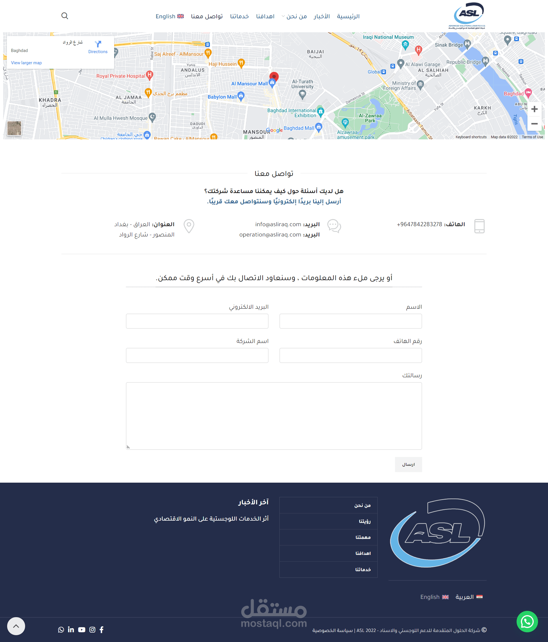تصميم وبرمجة موقع شركة عراقية لتقديم الحلول المتقدمة للدعم اللوجستي والاسناد ASL Iraq ، متعدد اللغات عربي انجليزي