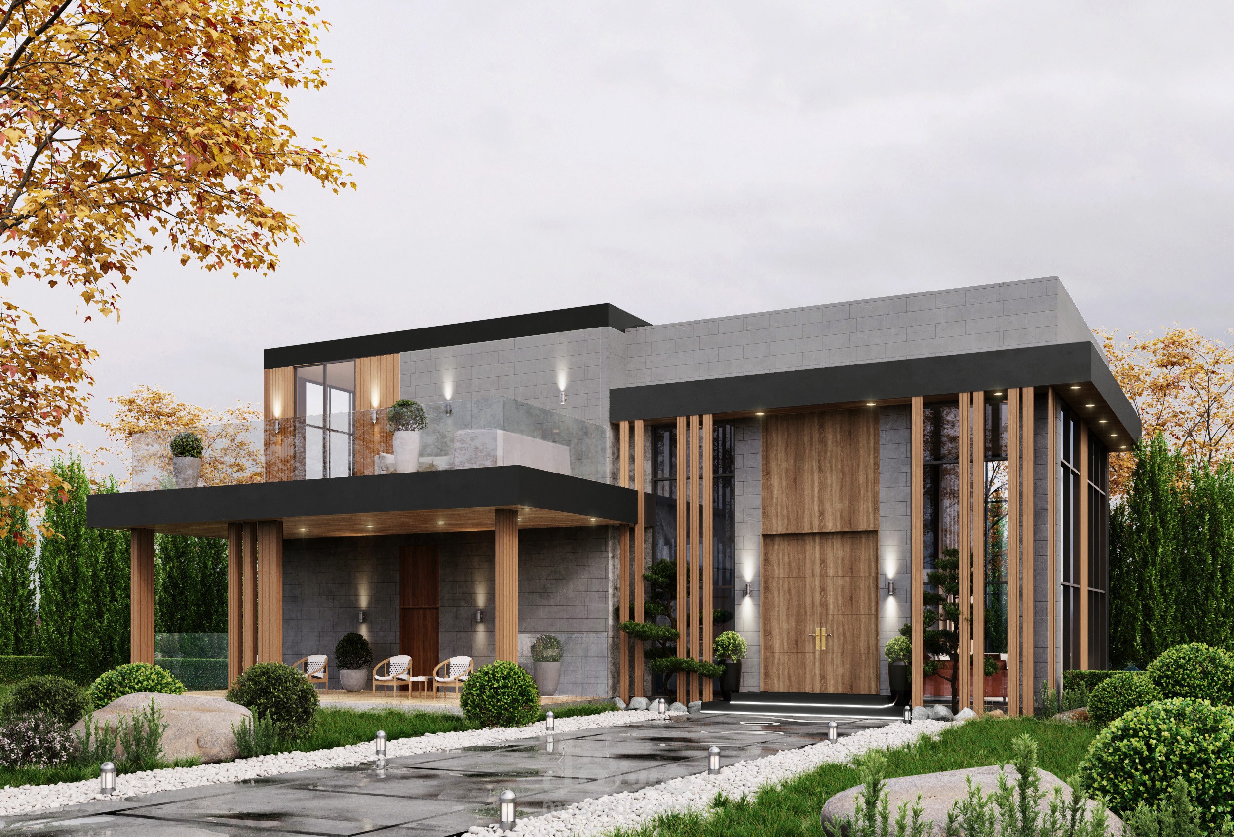 فيلا تحت الإنشاء تم تصميمها لتتناسب مع اجواء المزرعة المحيطة بها.