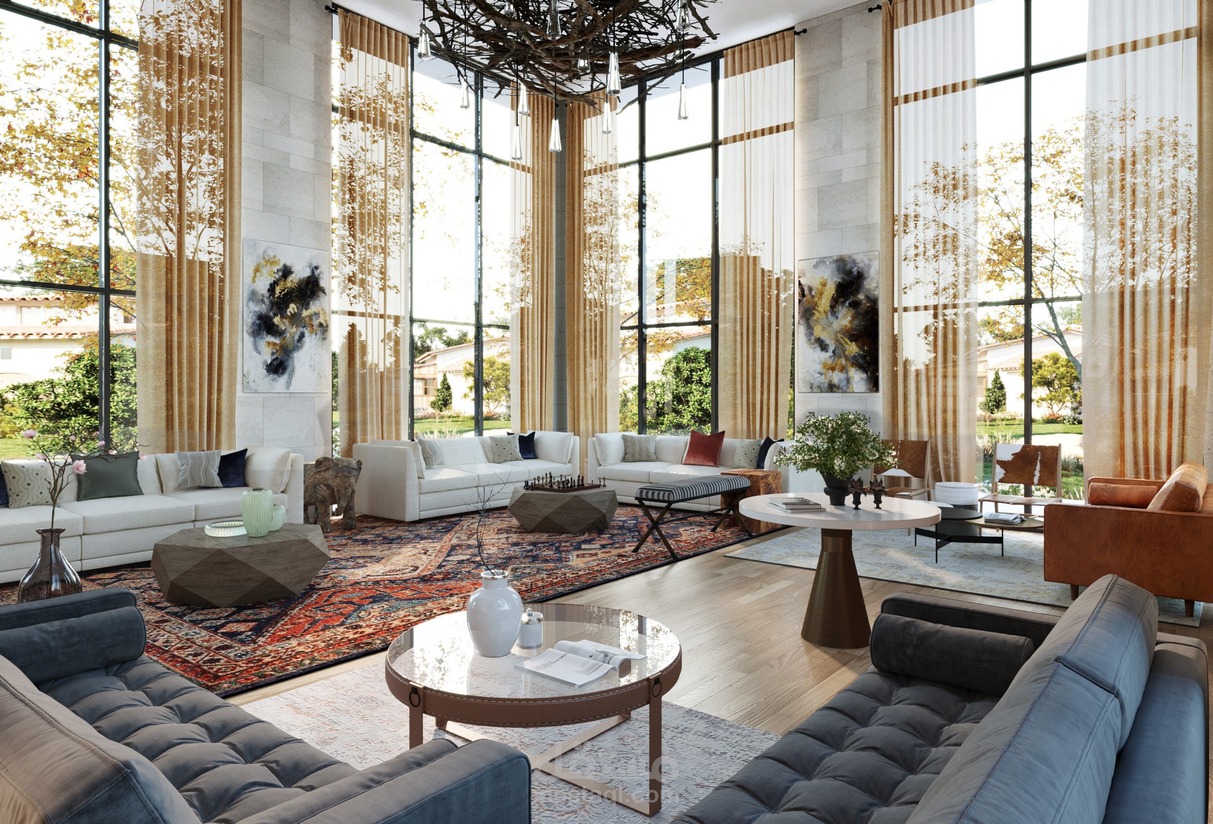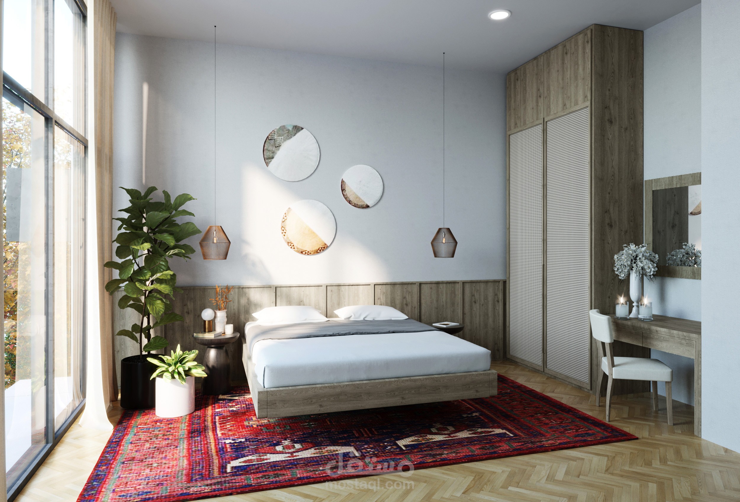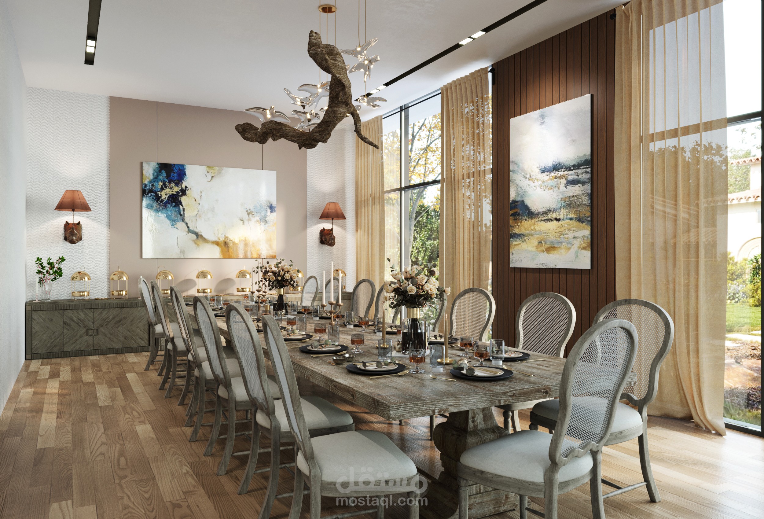 تم توزيع الفراغ بحيث يتناسب مع استقبال الضيوف فيها بإلاضافة الى وجود غرف نوم لهم.