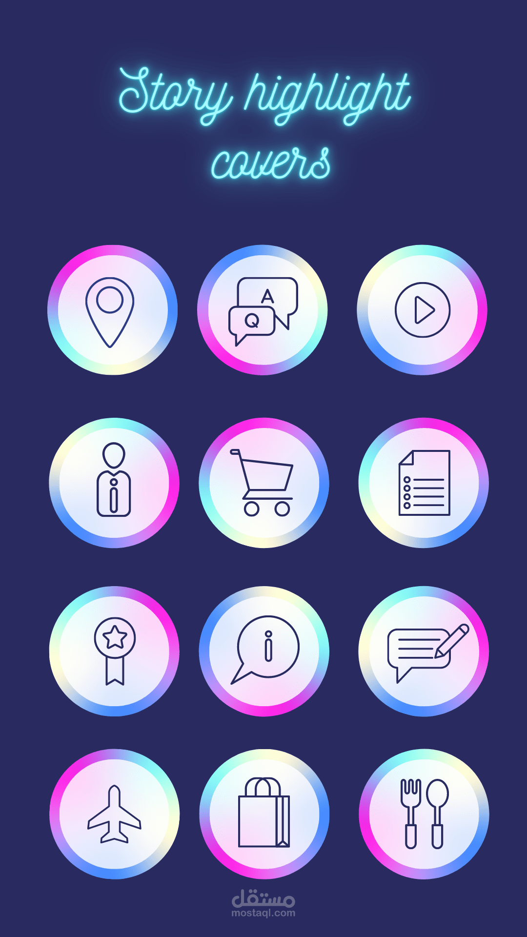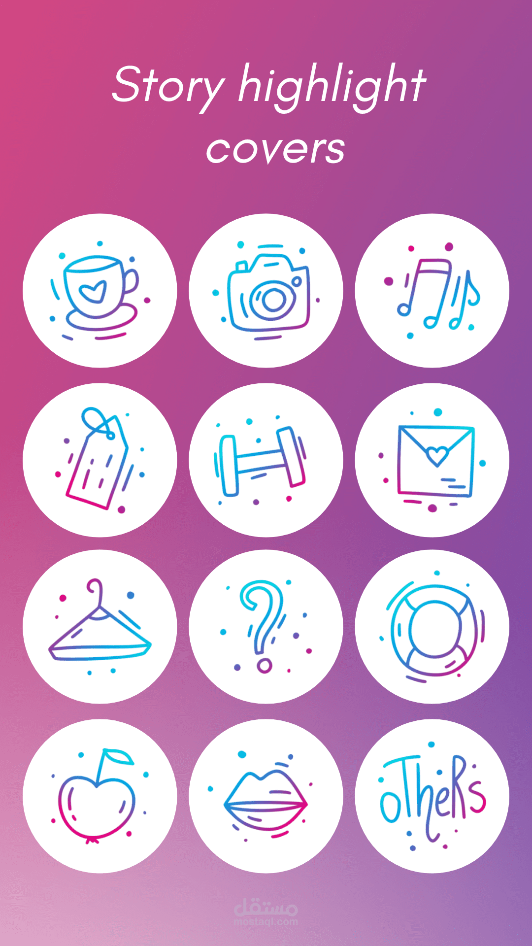 اصبحت الهايلايت احد الاشكال التي تعطي شكلاً جميلاً للصفحة ورمزاً للمنشورات والاستوريات التي تريد ايصالها للمتابعين سواء كانت صفحات تجارية او شخصية والهايلايت مقسمة الى عدة اقسام من رموز ( للسفر ، للطعام ، المعلومات الخاصة بك ، مهارات ، اقتباسات ) وبامكانك طلب هايلايت حديثة او تقليدية