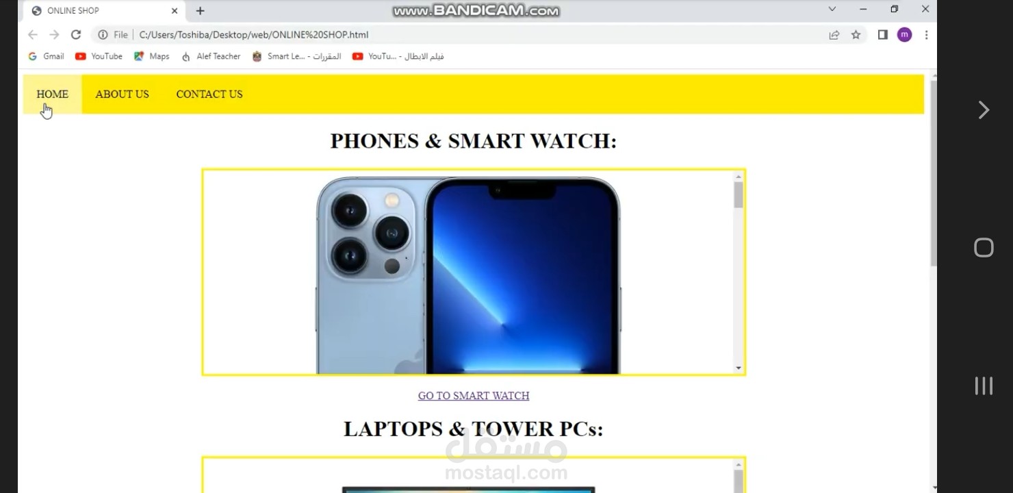 بناء موقع تسوق اونلاين عن طريق استخدام html & css و استخدام تاغ ال <iframe> ليقوم بعرض صفحات اخرى في صفحة الويب
