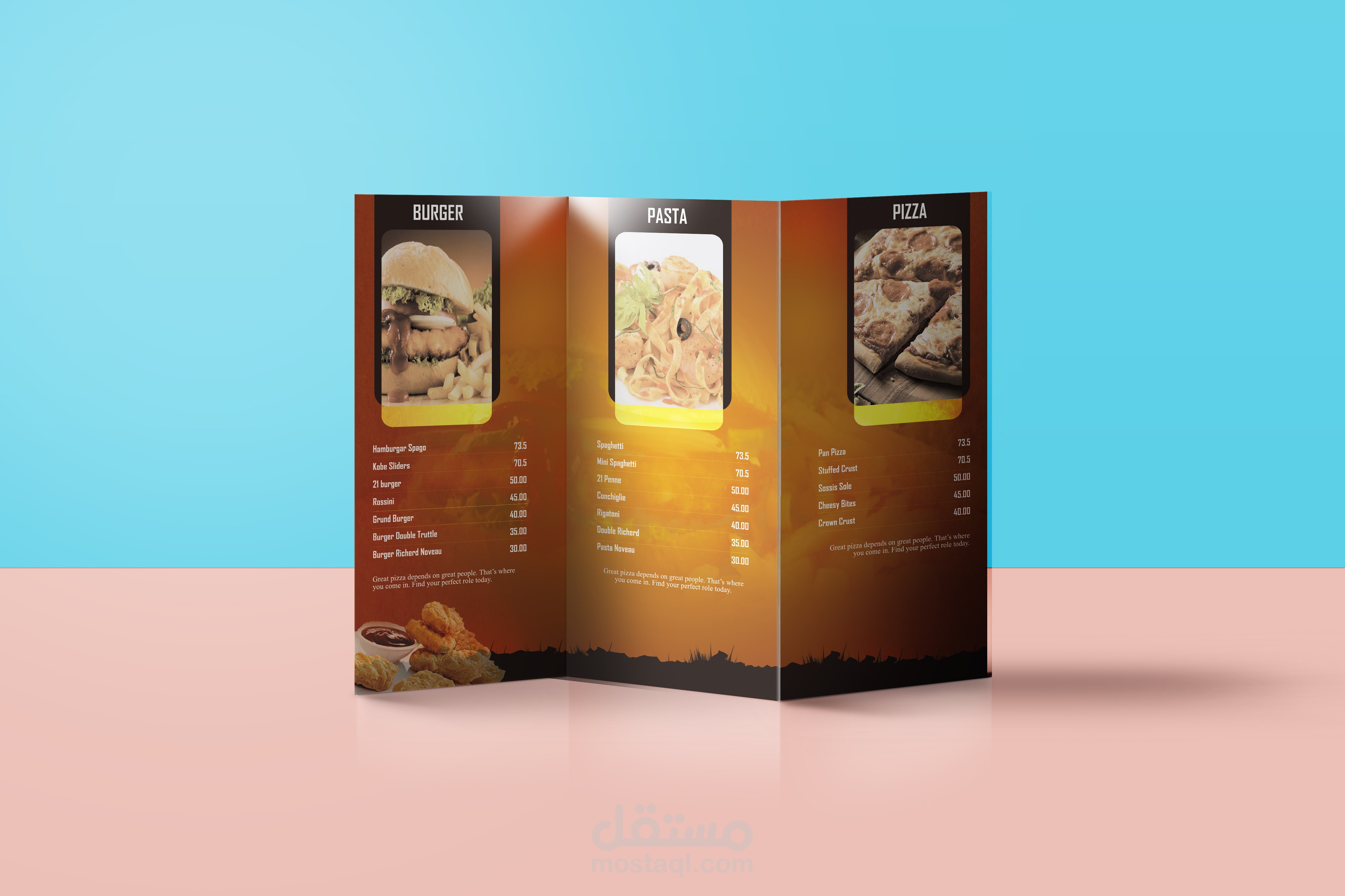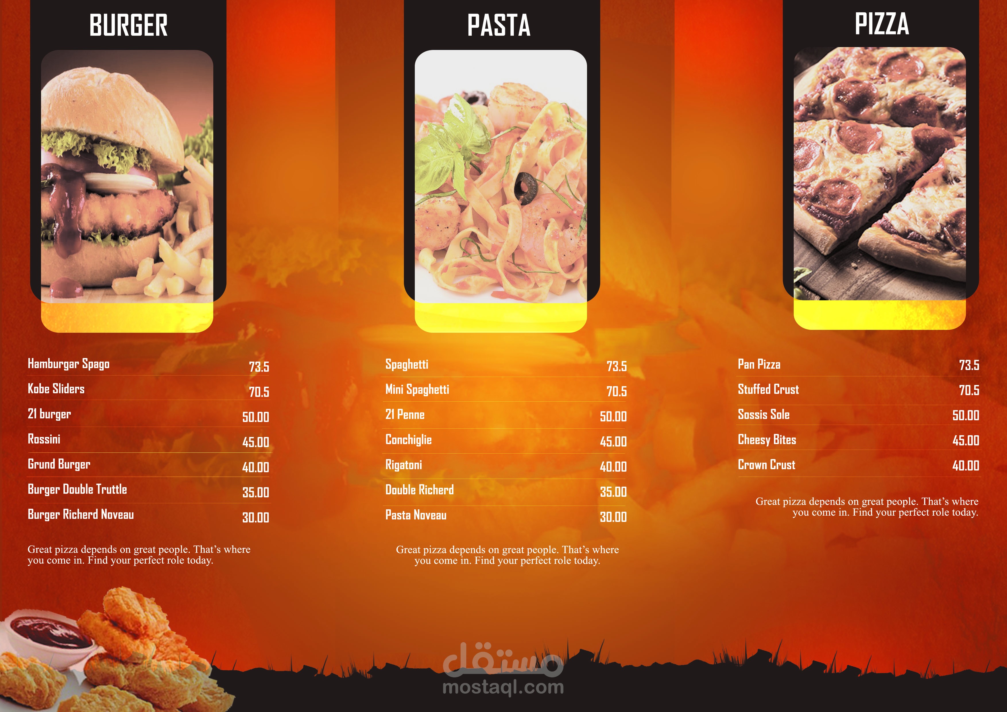 منيو تخيلي لأحد المطاعم