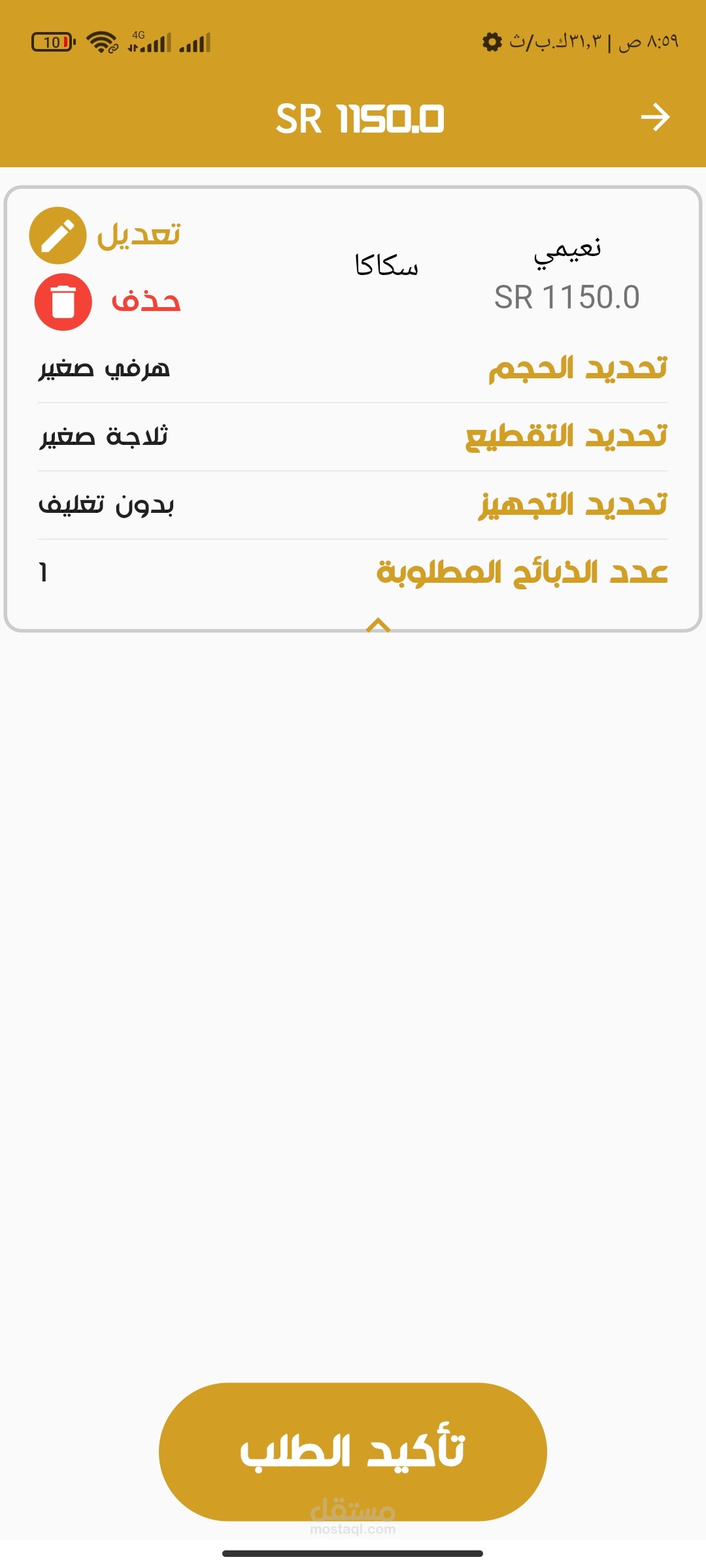 Now, with simple steps, after installing it on your mobile device, you can browse and order the carcasses you need and select the method of cutting, processing and delivery. The application provides you with a set of options that suit your needs.