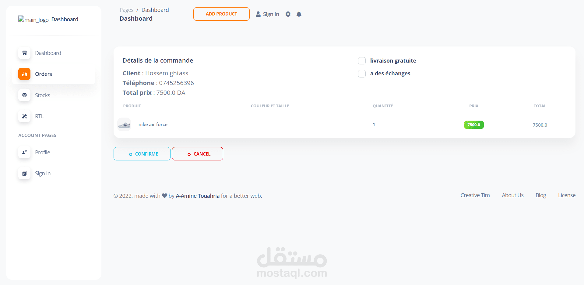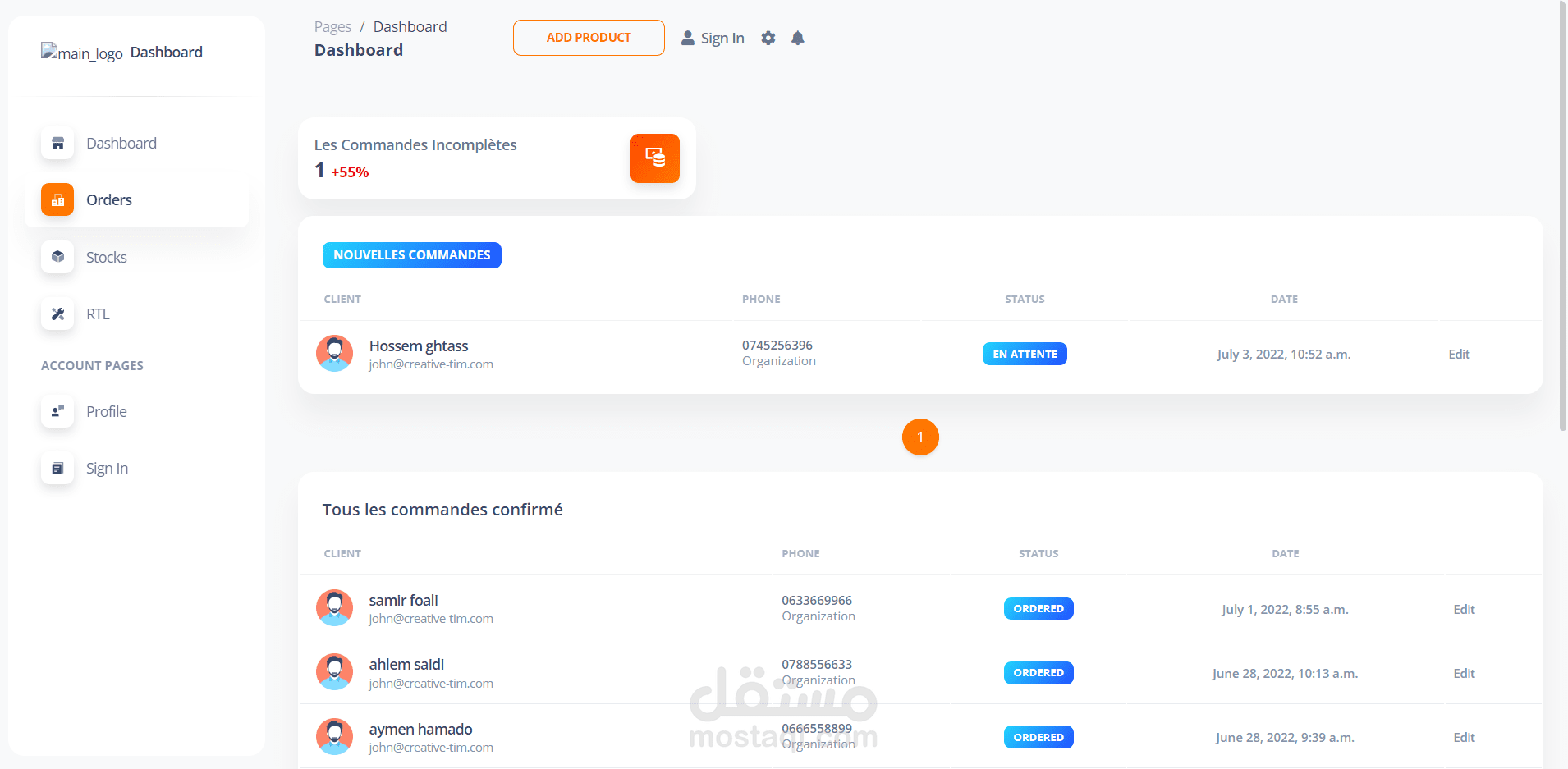 2 قسم الطلبات : يحتوي على الطلبات الجديدة (الغير مؤكدة) و الطلبات الكلية مع الإحصائيات الخاصة بها