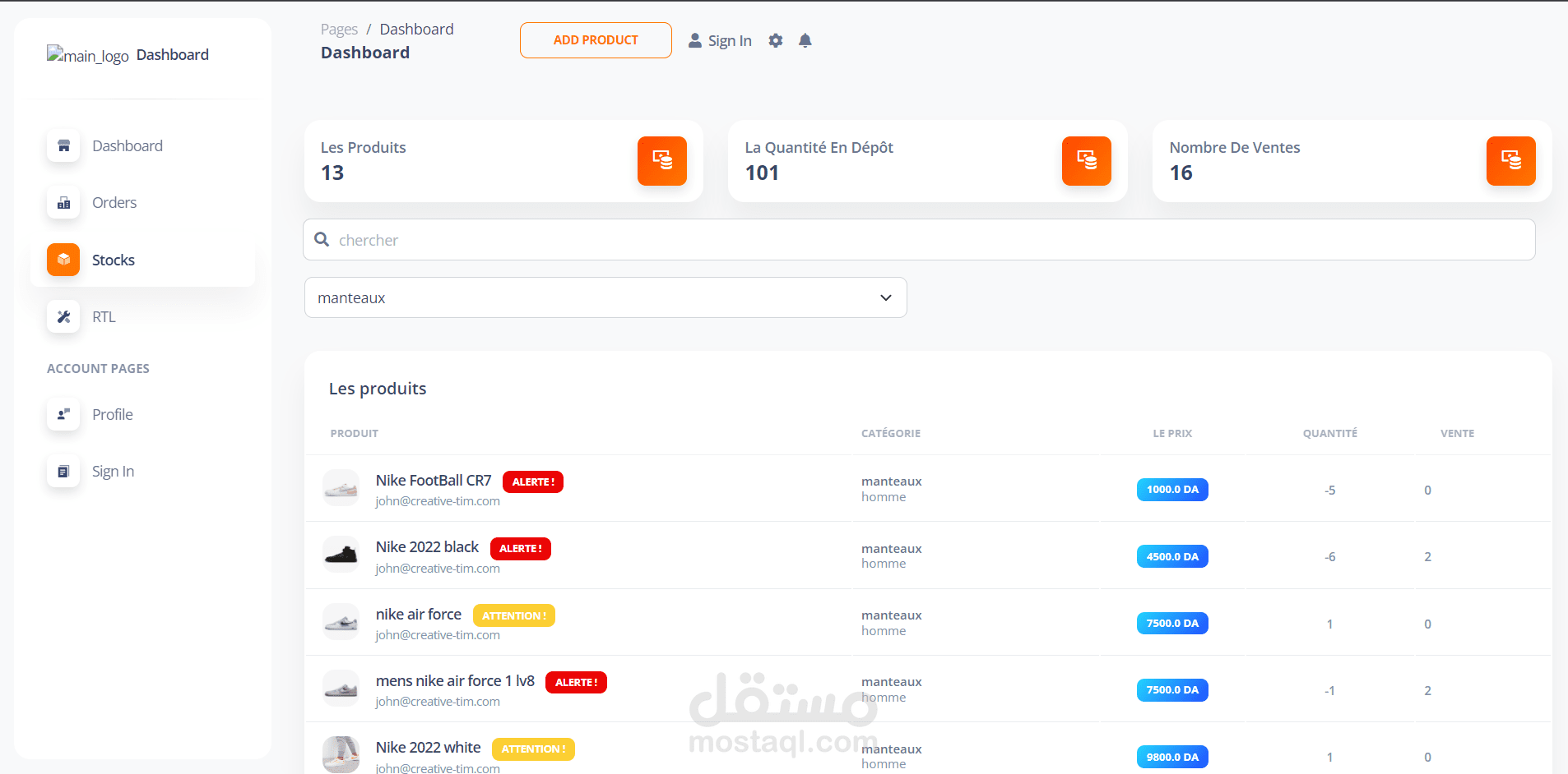 3 قسم المخزون : يضم حالة المخزون و عدد مبيعات كل منتج و المنتجات الأكثر مبيعا ....