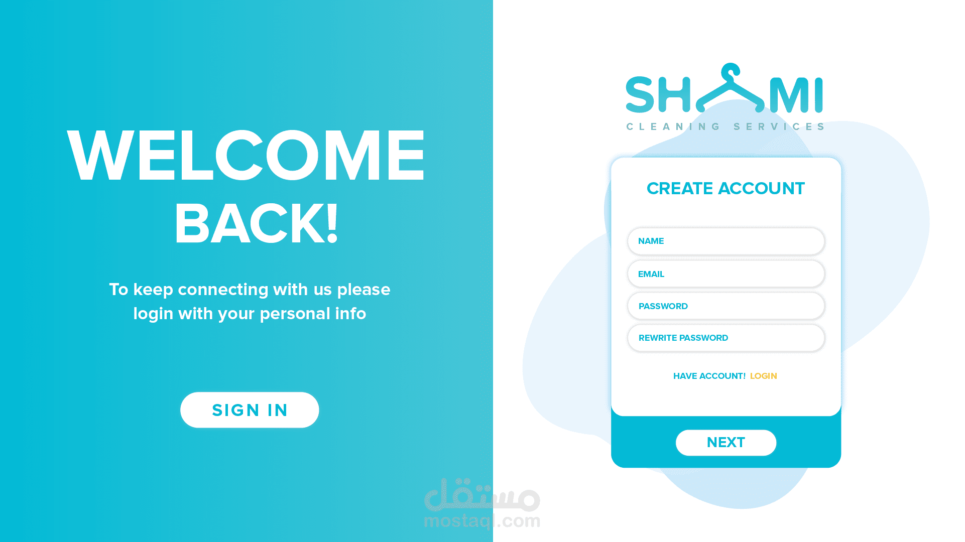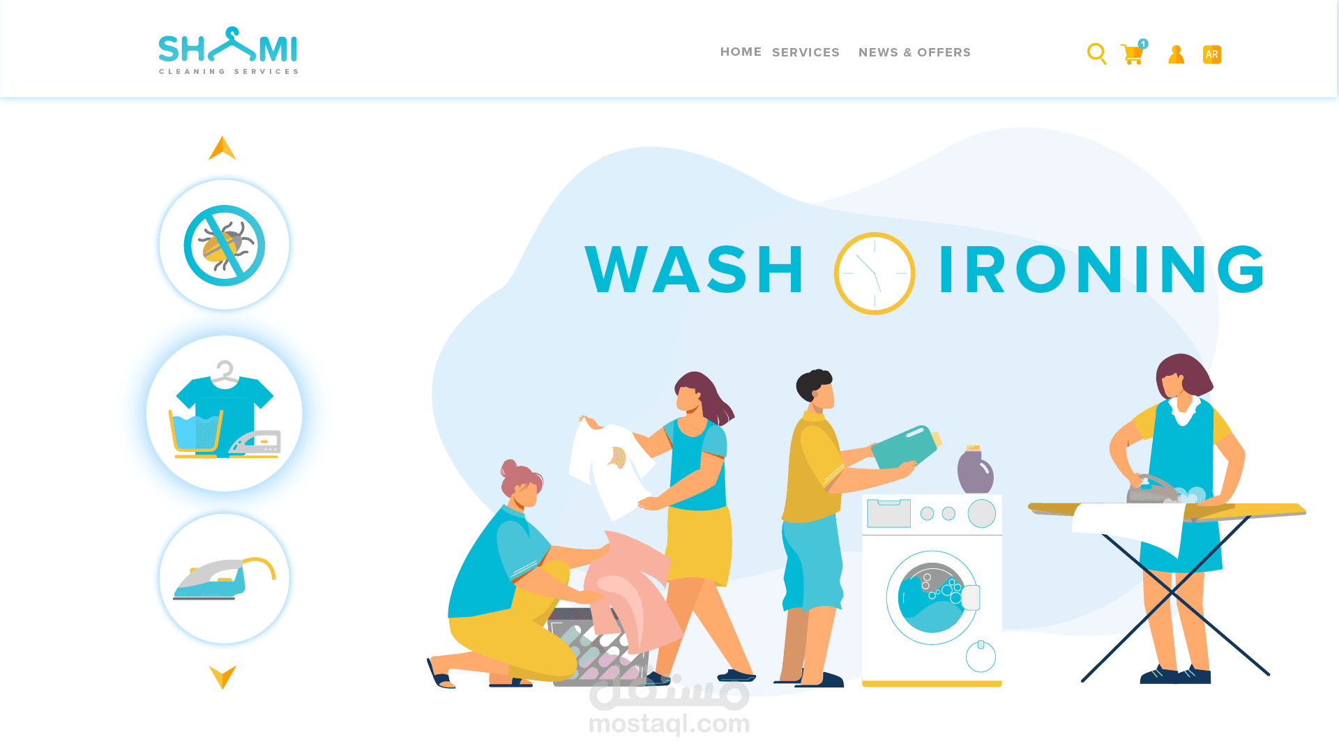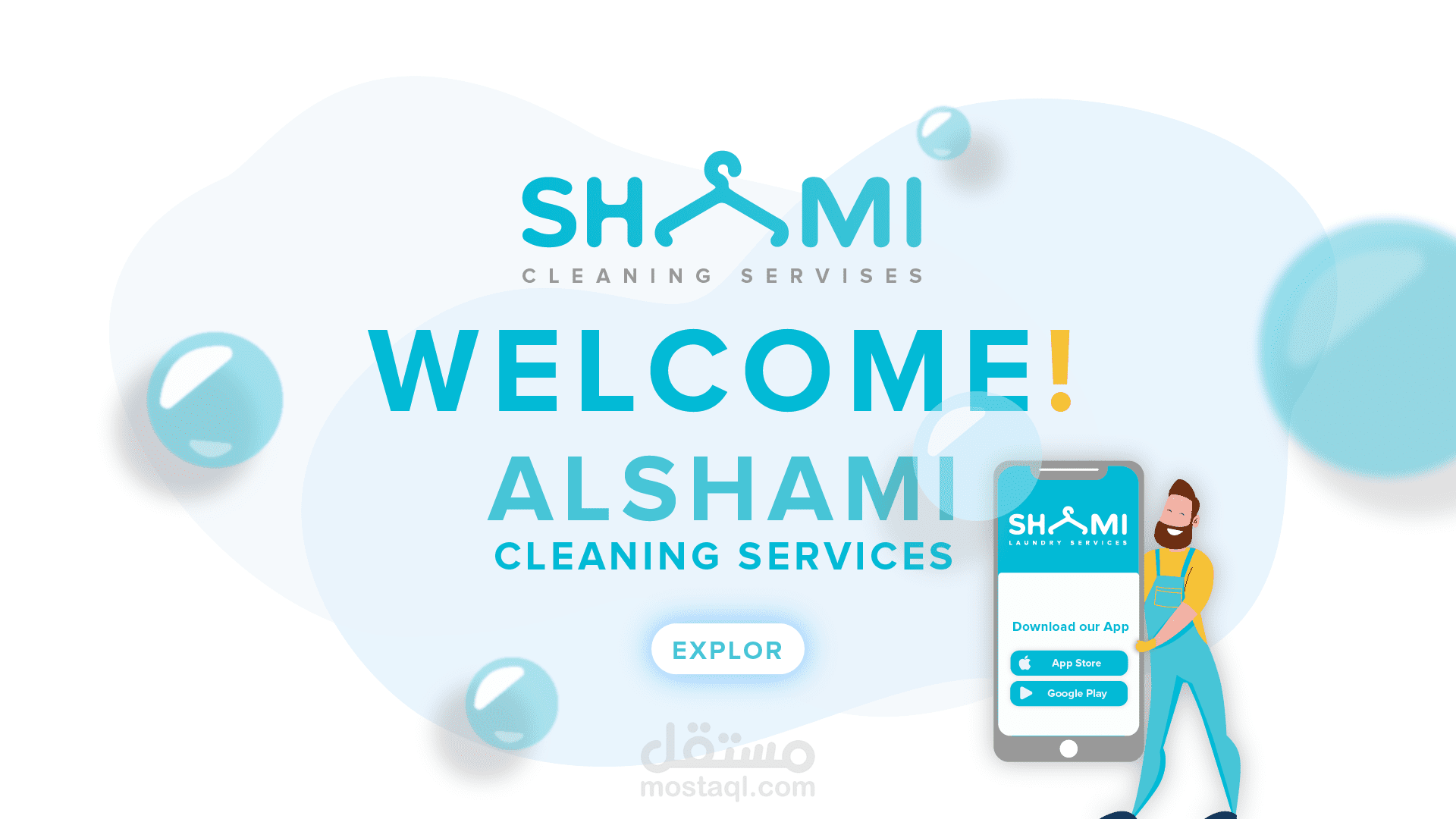تصميم براند لشركة تنظيف في سورية بالإضافة لتصميم واجهات الموقع الإلكتروني وواجهات تطبيق الموبايل