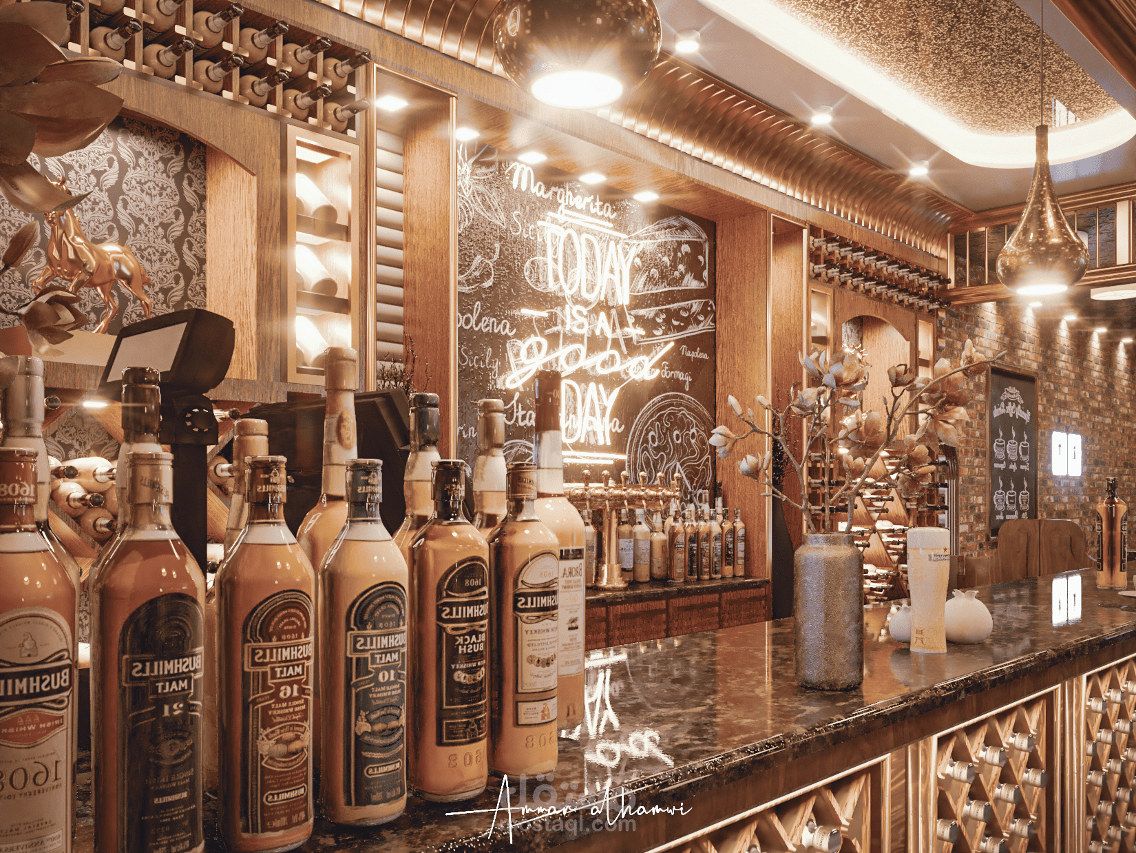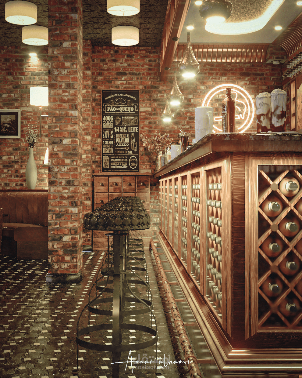 أحد أشهر اعمالي المنفذة تصميم داخلي وديكور لبار فندق الصالح في مدينة طرطوس | سورية، يقع البار في الطابق العلوي لطابق الاستقبال في فندق الصالح وتم تصميمه على الطراز الأميركي الغربي حيث استخدمنا فيه أجود أنواع مواد البناء المستوردة، تم افتتاح البار في 2020 ،ويستقطب رجال الأعمال والشخصيات الهامة من النزلاء في الفندق كما يضم البار خشبة مسرح اعتلتها أهم فرق الجاز في سورية، لي الفخر بان أقدم لكم هذا العمل وأتشرف بزيارتكم لي.