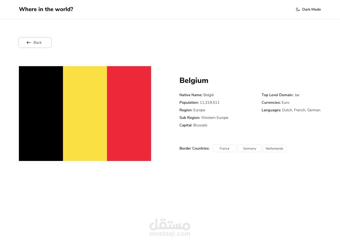أنشات هذا الموقع من تحدي على موقع frontendmentor باستخدام REST countries API لقد قمت باستخدام React.js لبناء واجهة المستخدم