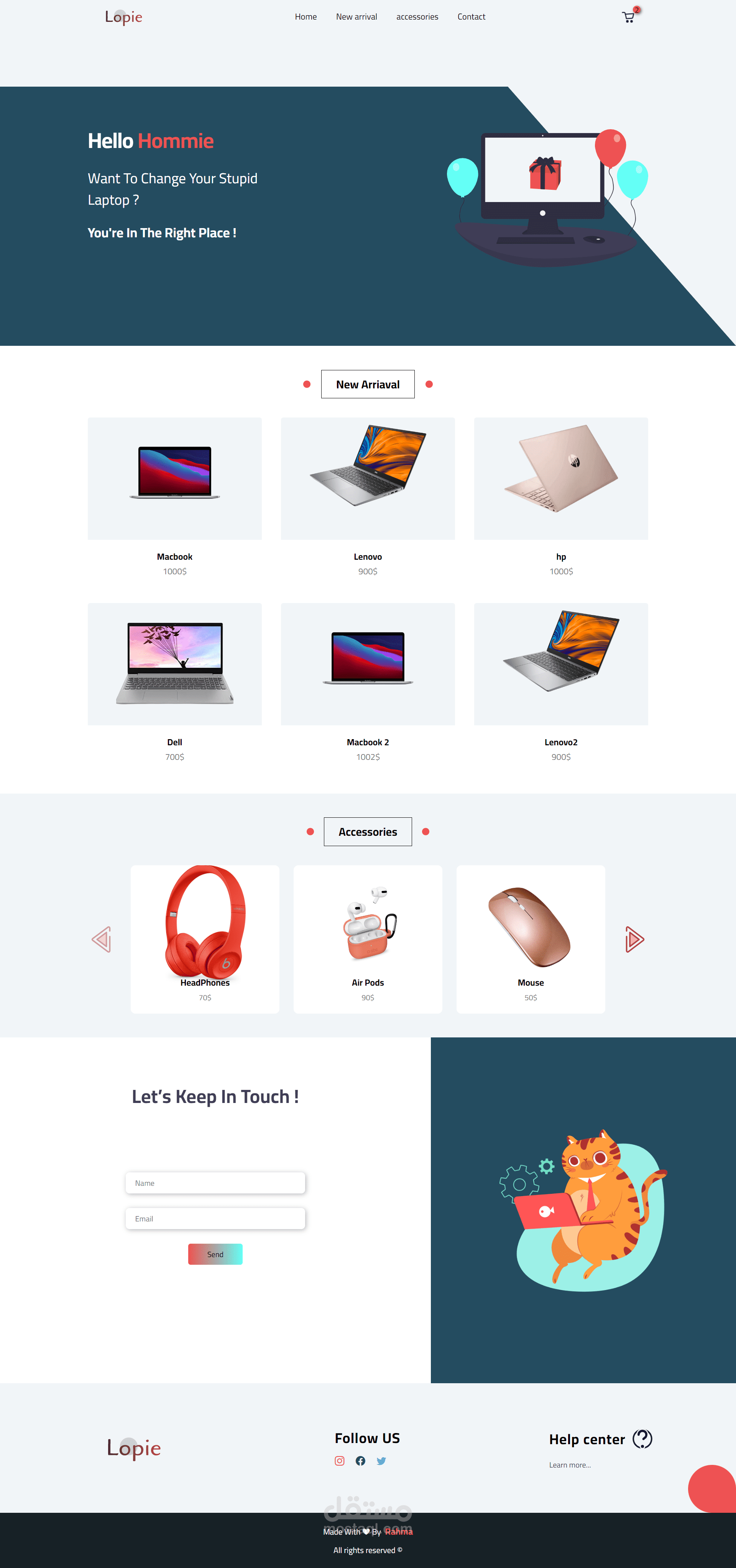 واجهة متجر الكتروني صممته و طورته بنفسي